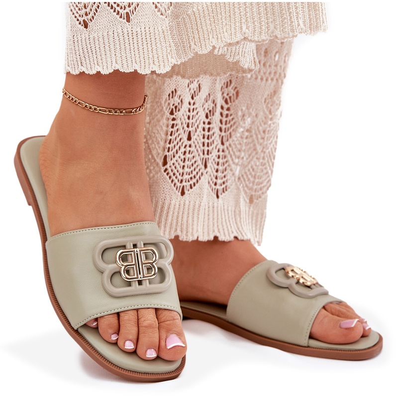 Il convient de se rappeler de suivre le tableau des tailles lors du choix de la taille pour régler parfaitement les tongs -flops à vos pieds. Ces tongs plats sont donc non seulement un ajout à la mode, mais aussi une proposition pratique chaque jour. Obtenez un peu de luxe et de confort - choisissez des tongs FLAT pour femmes avec un détail décoratif dans une couleur verte à la mode!