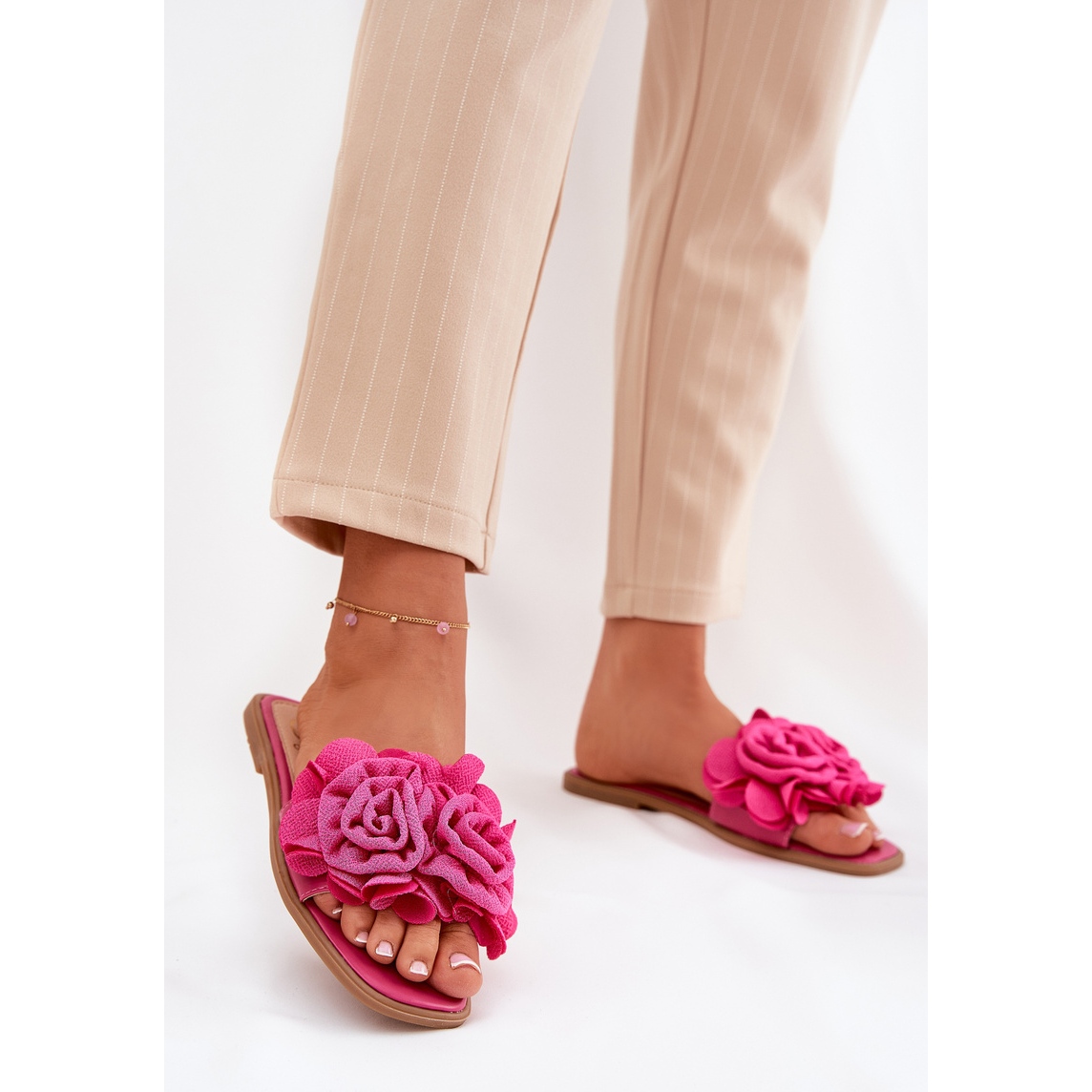 Inna marka Les tongs pour femmes à thèmes plates avec des fleurs fuchsia décoratives rose