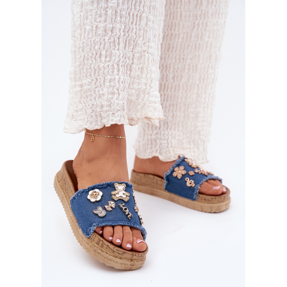 Inna marka Les tongs pour femmes avec des épingles d'or sur la plate-forme bleu marine