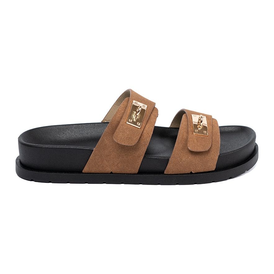 Découvrez les pantoufles féminines Shelvt à la mode et confortables, qui sont un complément parfait aux stylisations de tous les jours. Les tongs Jansnobrite, décorés de subtils inserts en or, combinent un style classique et décontracté, ce qui en fait un excellent choix au printemps et en été.