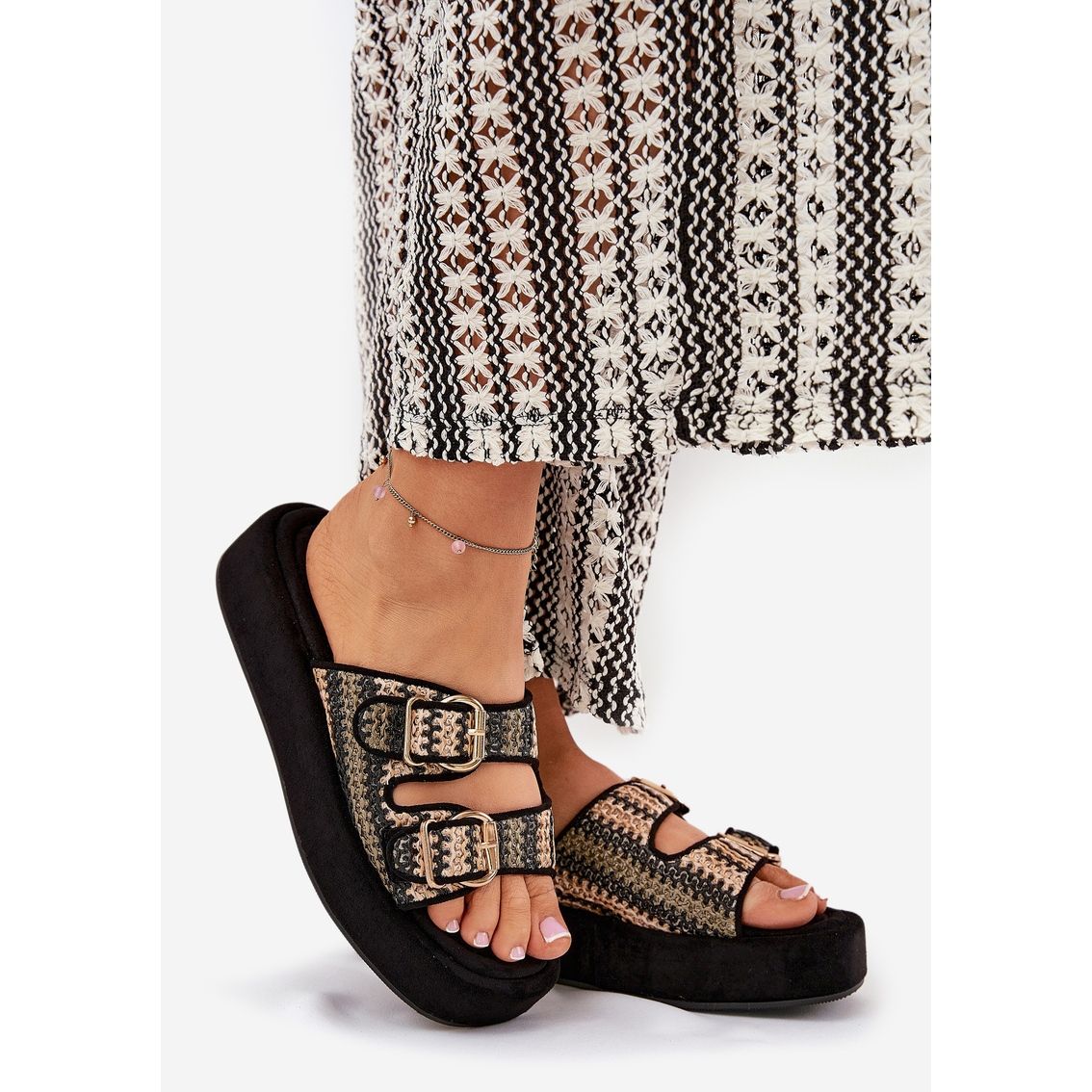 Êtes-vous à la recherche des tongs d'été parfaits qui combineront le confort avec un style à la mode? Les tongs pour femmes sur la plate-forme avec boucles et la tresse noire sont un excellent choix!