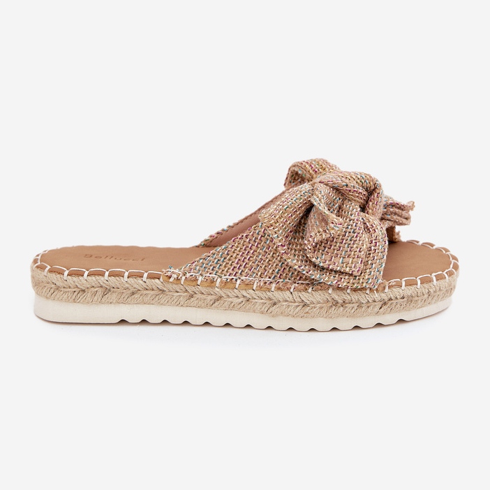 Détails: Les tongs pour femmes sur la plate-forme avec une tresse et un arc multicolore