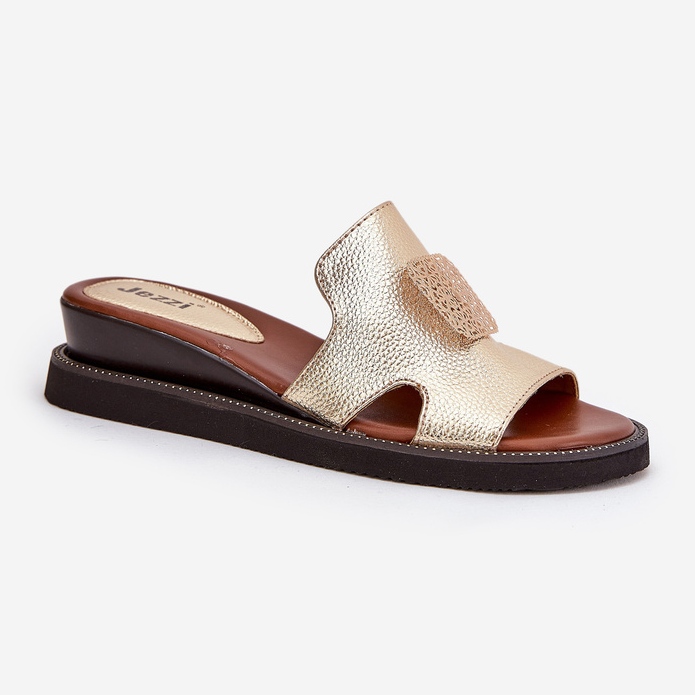Détails: Jezzi Les tongs pour femmes sur un coin en cuir anchoïque avec une décoration dorée d'or