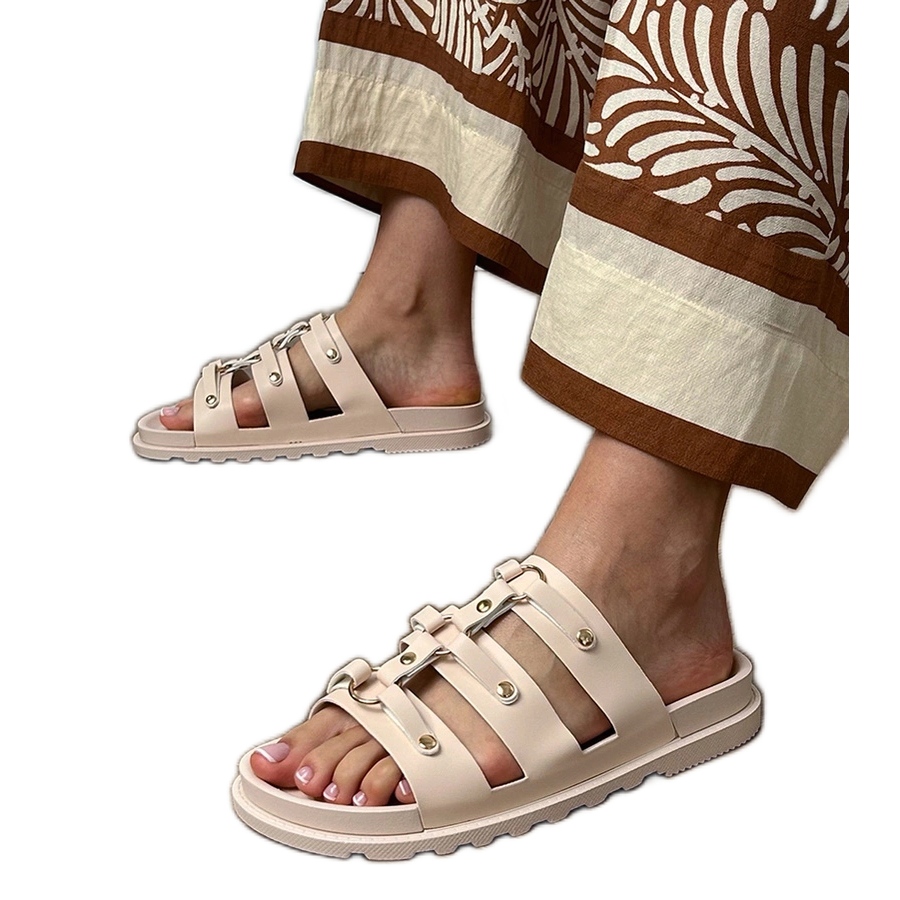 Détails: Les tongs romains beige avec des goujons