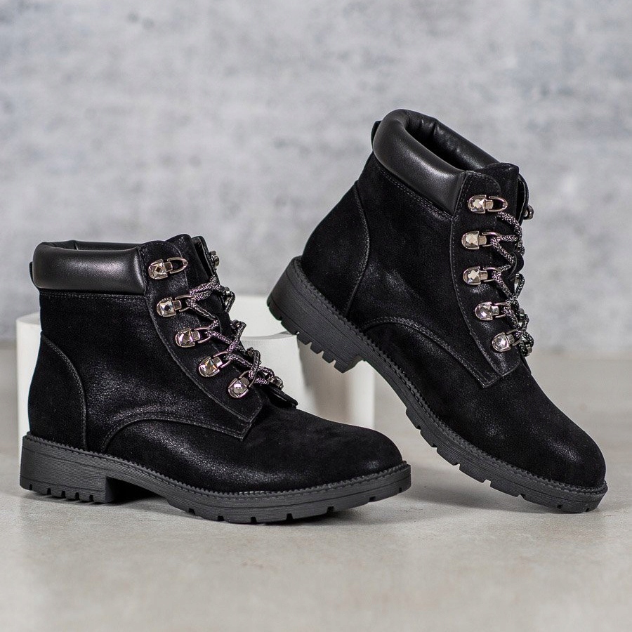 Les chaussures sont fabriquées en cuir suédé écologique, ce qui souligne leur aspect élégant tout en respectant l'environnement. La hauteur du talon de 3,5 cm et le bout rond classique ajoutent confort et style. De plus, l’isolation à l’intérieur de la chaussure protégera vos pieds du froid.