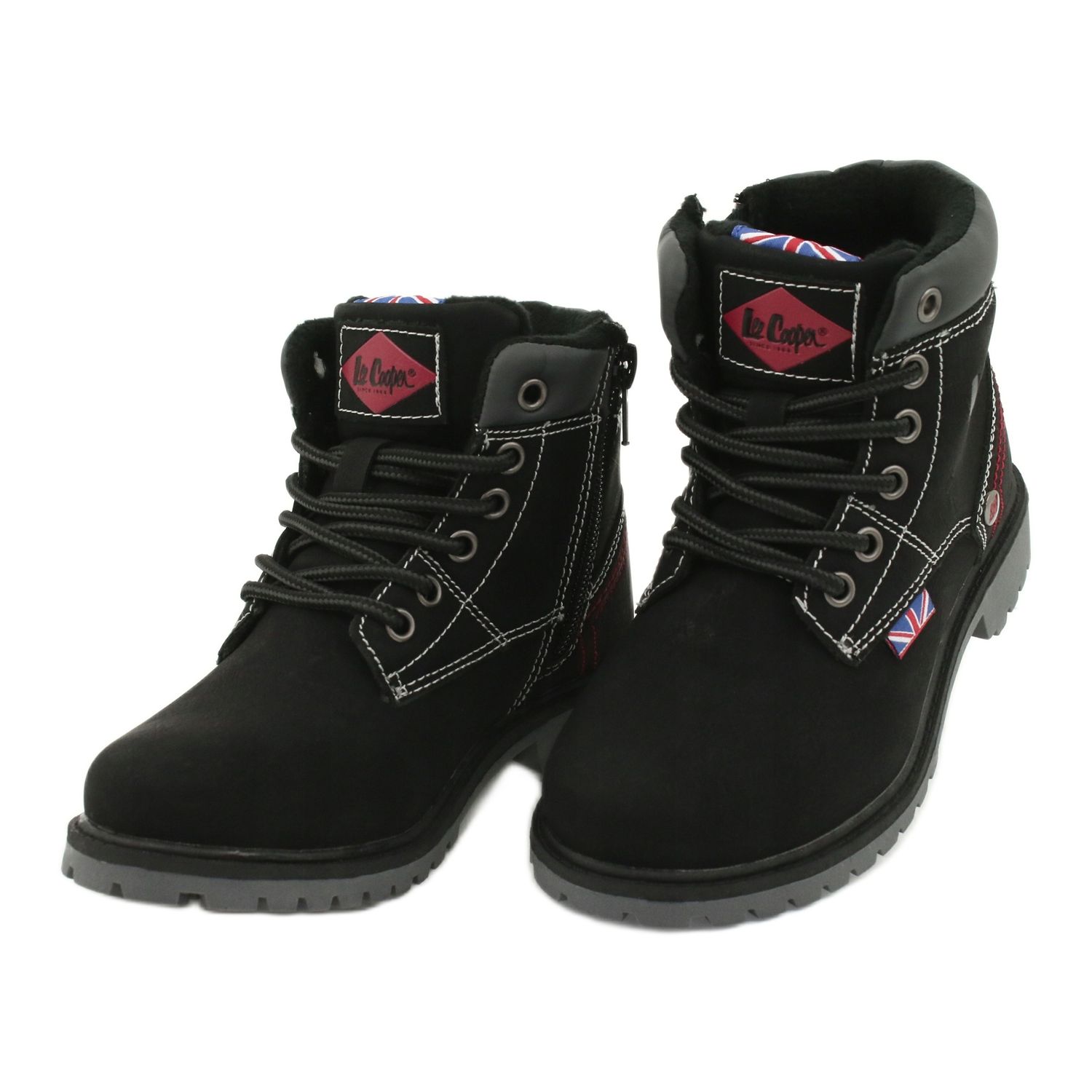 Des trappeurs d'hiver chauds et confortables pour un garçon de la marque Lee Cooper. Fabriqué en cuir nubuck de haute qualité et isolé avec une toison délicate, ils offrent une protection contre le froid tout en portant du confort. L'utilisation d'une fermeture à glissière facilite la mise en place et les chaussures, et des lacets supplémentaires vous permettent d'adapter avec précision l'étirement au pied de l'enfant. Le talon rigide stabilise le talon, ce qui améliore le confort et la sécurité en jouant.