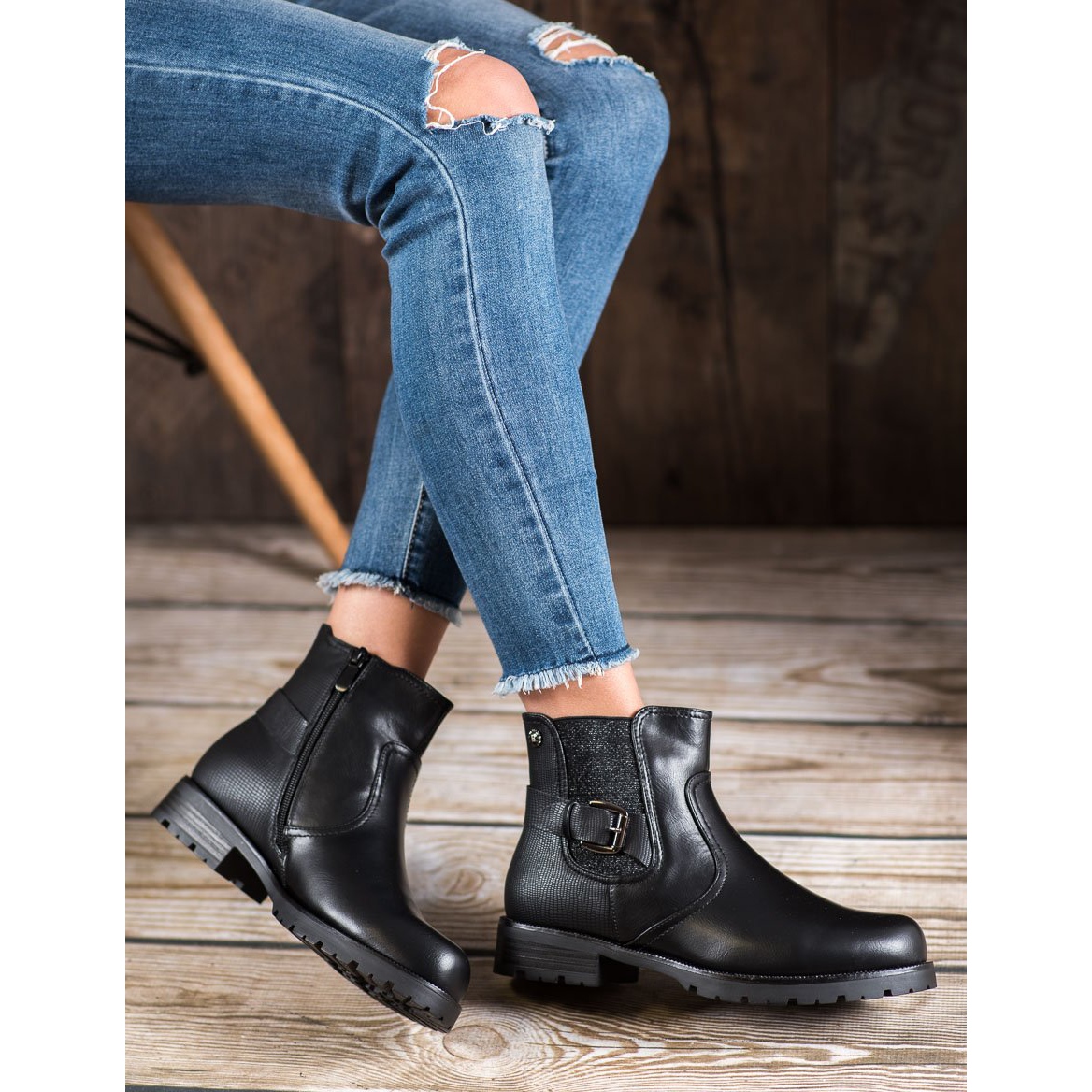 Les Gogo Workers avec une boucle de couleur noire universelle sont des chaussures parfaites pour les femmes qui apprécient le confort et un look à la mode. Fabriquées en cuir écologique de haute qualité, ces bottines se distinguent non seulement par leur esthétique, mais aussi par leur fonctionnalité, ce qui en fait un choix idéal pour les journées plus froides.