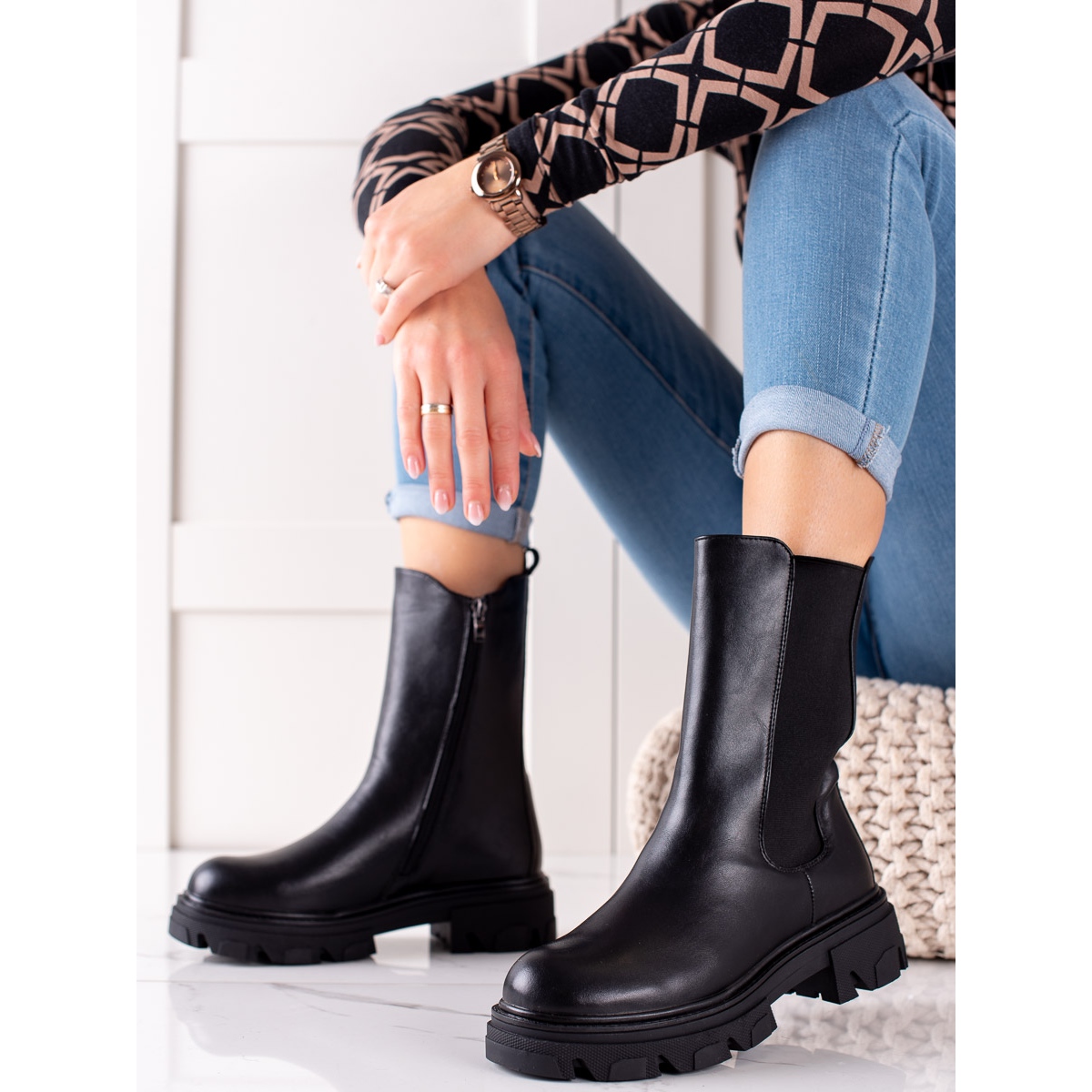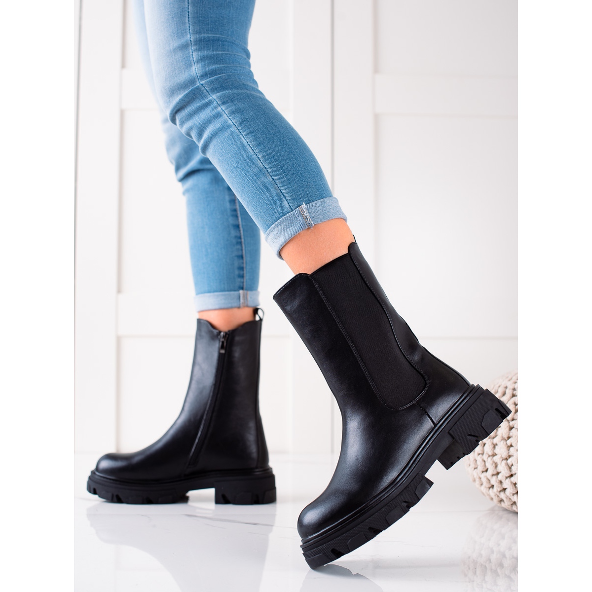 Les bottes sont fabriquées à partir de cuir écologique de haute qualité, ce qui les rend non seulement respectueuses de l'environnement, mais également superbes sur la jambe. L'isolation et un talon doux intégré assurent un confort de port même par temps froid. De plus, le bout rond et le talon plat de 4,5 cm les rendent extrêmement confortables, parfaits pour les longues promenades ou les tâches quotidiennes.