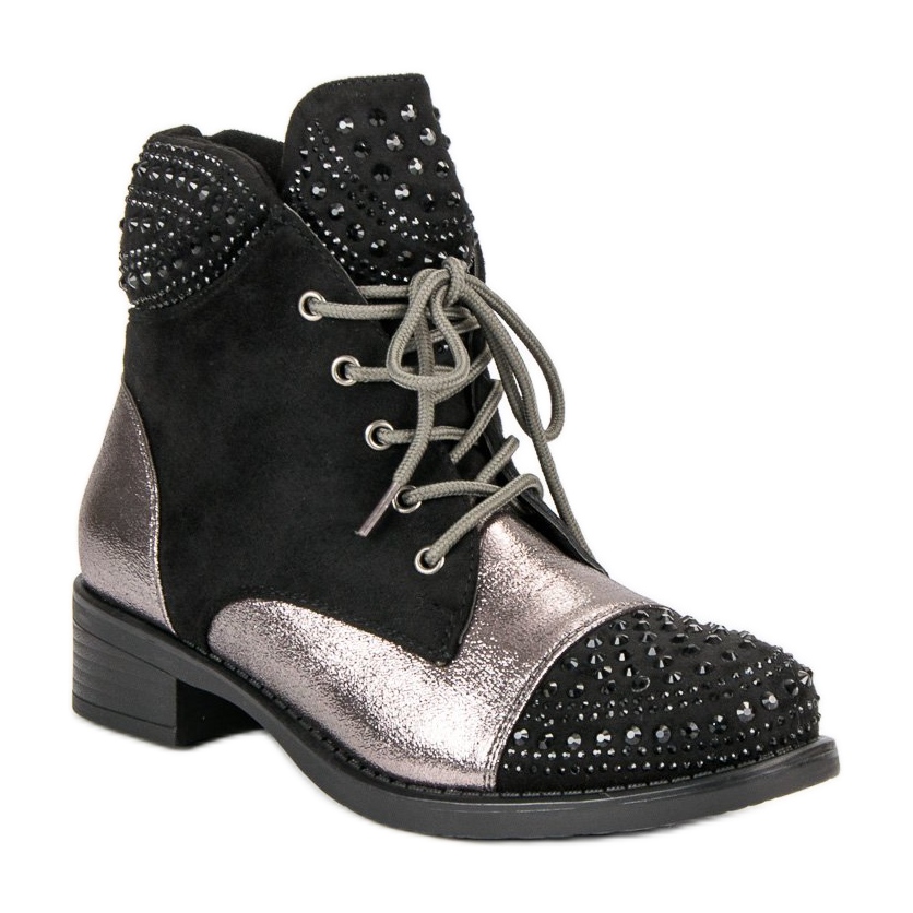 Conçues pour les femmes qui n'ont pas peur d'expérimenter la mode, les ouvrières Seastar présentent des décorations de clous uniques qui soulignent parfaitement leur caractère rock. La combinaison du cuir écologique argenté avec du daim et des strass fait que ces chaussures attirent l'attention et ajoutent un élément de glamour à n'importe quel style.