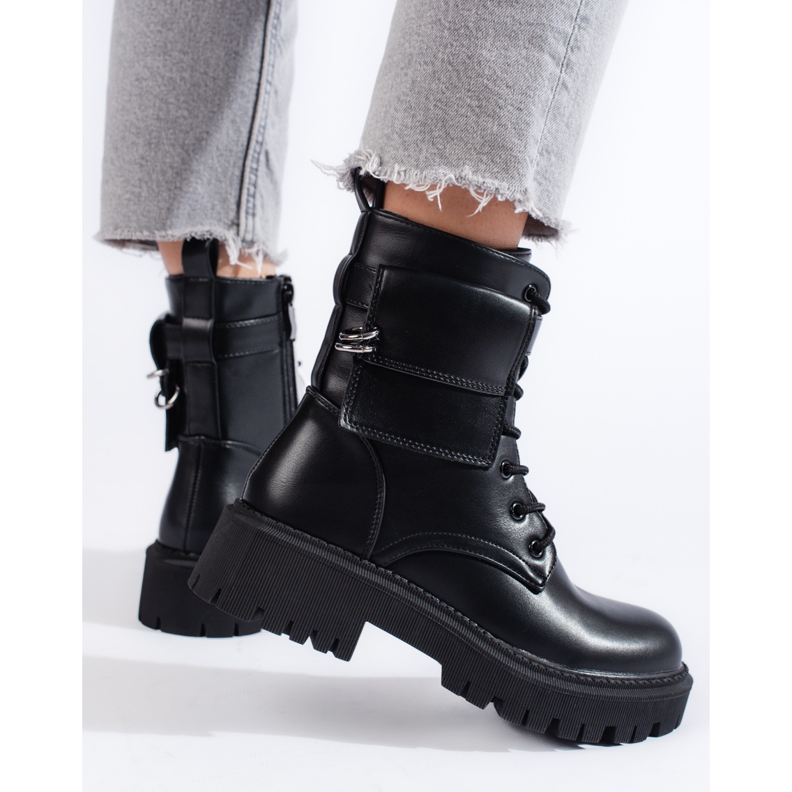 Les travailleurs classiques et noirs de Shelovet sont une combinaison de personnage rock avec un confort quotidien. Fabriqué en cuir écologique, isolé et conçu pour assurer le confort à chaque stylisation urbaine - du jean aux robes avec des collants épais.