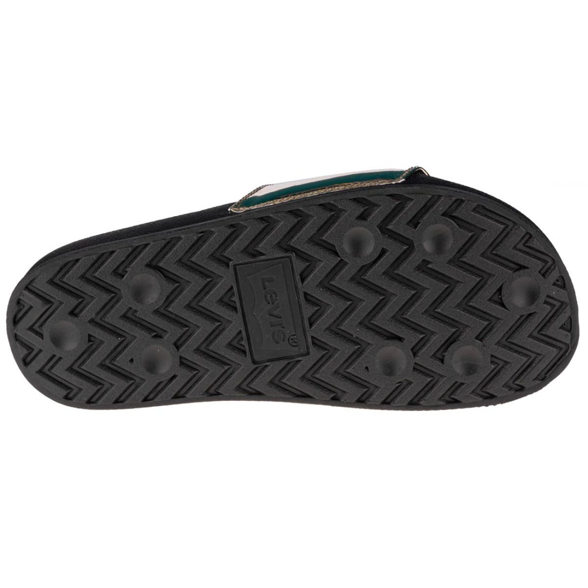 Découvrez les tongs Levi's June Batwing SW 229170-755-04, parfaites pour les femmes qui apprécient le style et le confort. Ces élégantes tongs noires aux accents dorés métallisés se distinguent non seulement par leur design attrayant, mais aussi par leur haute qualité de fabrication. Parfaits pour la piscine, la plage ou les sorties quotidiennes, ils constituent un excellent choix pour les journées d'été.
