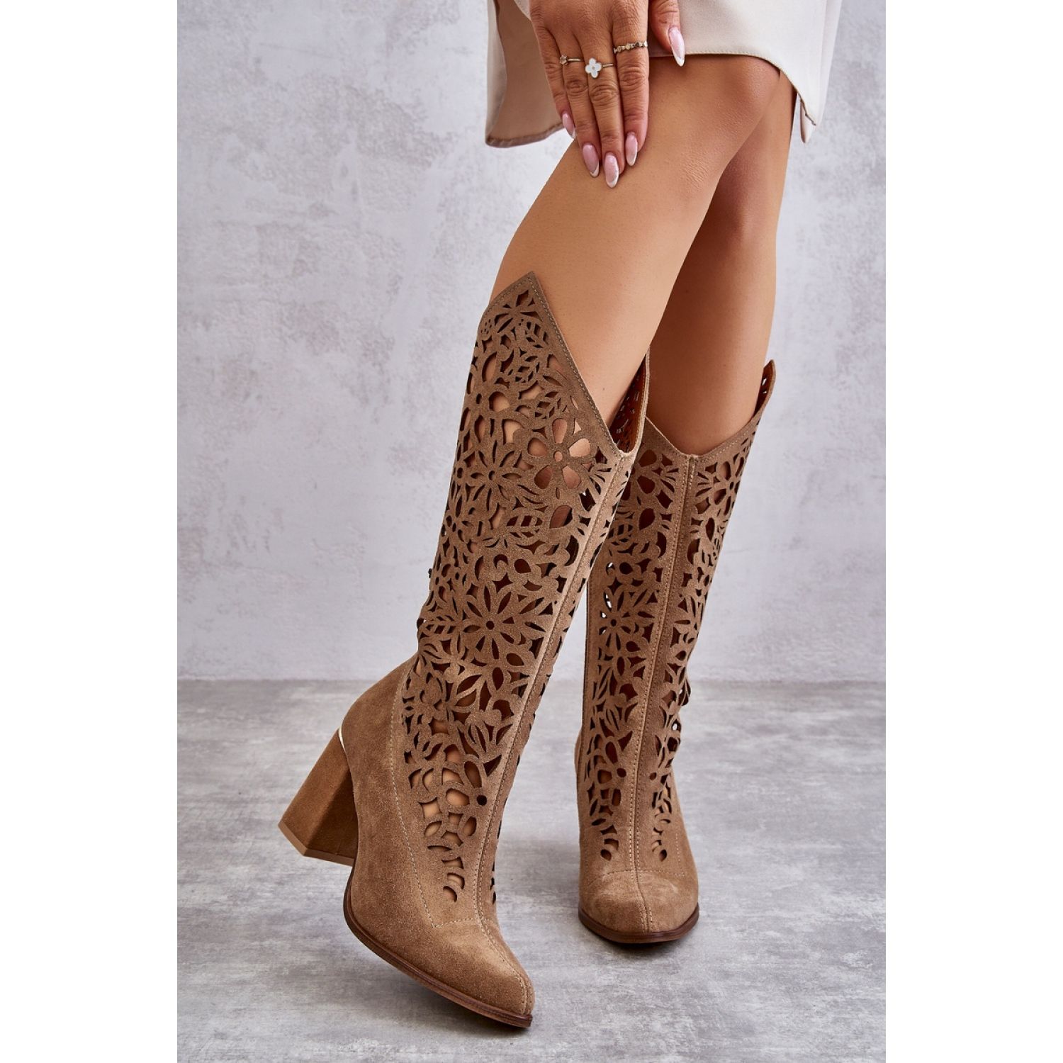 Nous présentons des chaussures Lewski 3234 dans une nuance élégante de beige sombre, qui est un excellent choix pour chaque femme à la mode. Ces bottes élégantes avec une tige de genou ouverte et un nez dans un style Ajouter Spitz et un caractère à n'importe quelle stylisation.