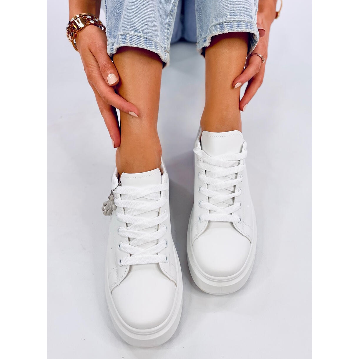 Les baskets compensées Liezel Grey avec pendentif blanc sont un choix parfait pour les femmes qui apprécient la combinaison de style, de confort et de design moderne. Avec une hauteur de cale de 7,5 cm, ces chaussures ajoutent non seulement de l'élégance, mais soulignent également parfaitement la silhouette. Un charmant pendentif en forme d'ours en peluche est un accent original qui attirera certainement l'attention et donnera à n'importe quelle tenue un caractère unique.