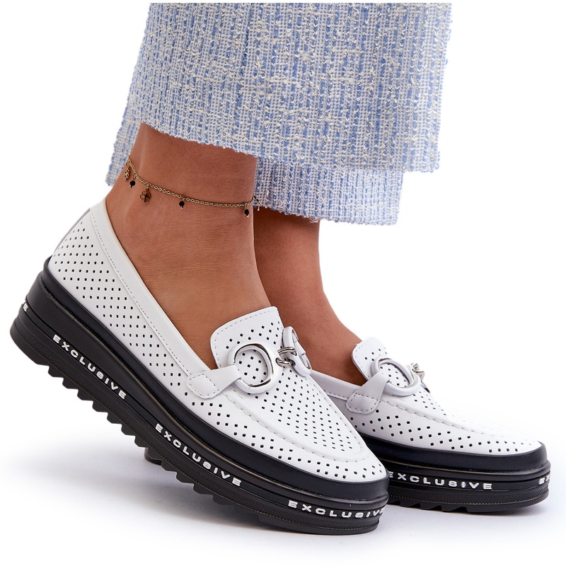 S.Barski Locons pour femmes en cuir OpenWork sur la plate-forme avec un ornement de S. Barski LR750 White blanc
