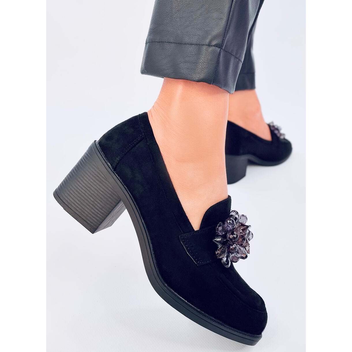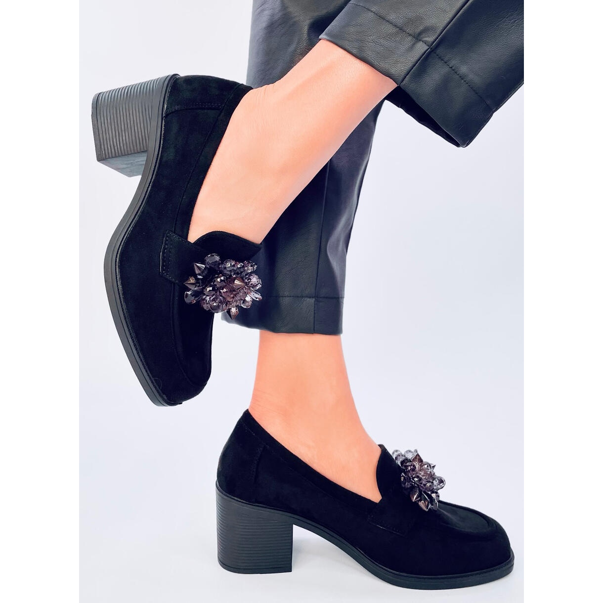 Mocassins noirs à talons hauts et pierres : une élégance intemporelle avec une touche d'éclat