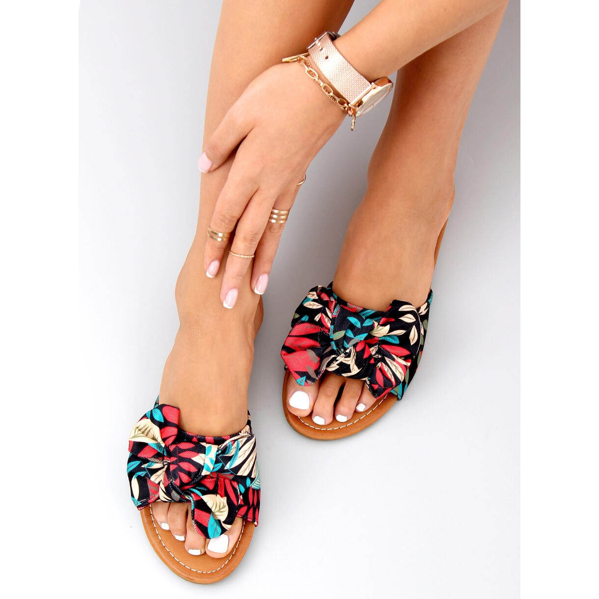 Ce modèle est parfait pour un usage quotidien - il est parfait aussi bien pour la plage que pour se promener en ville. De plus, un nœud délicat leur ajoute du charme, les rendant encore plus attrayants. Grâce à leur design universel noir et multicolore, les tongs Lotos Black se combinent facilement avec une variété de vêtements.