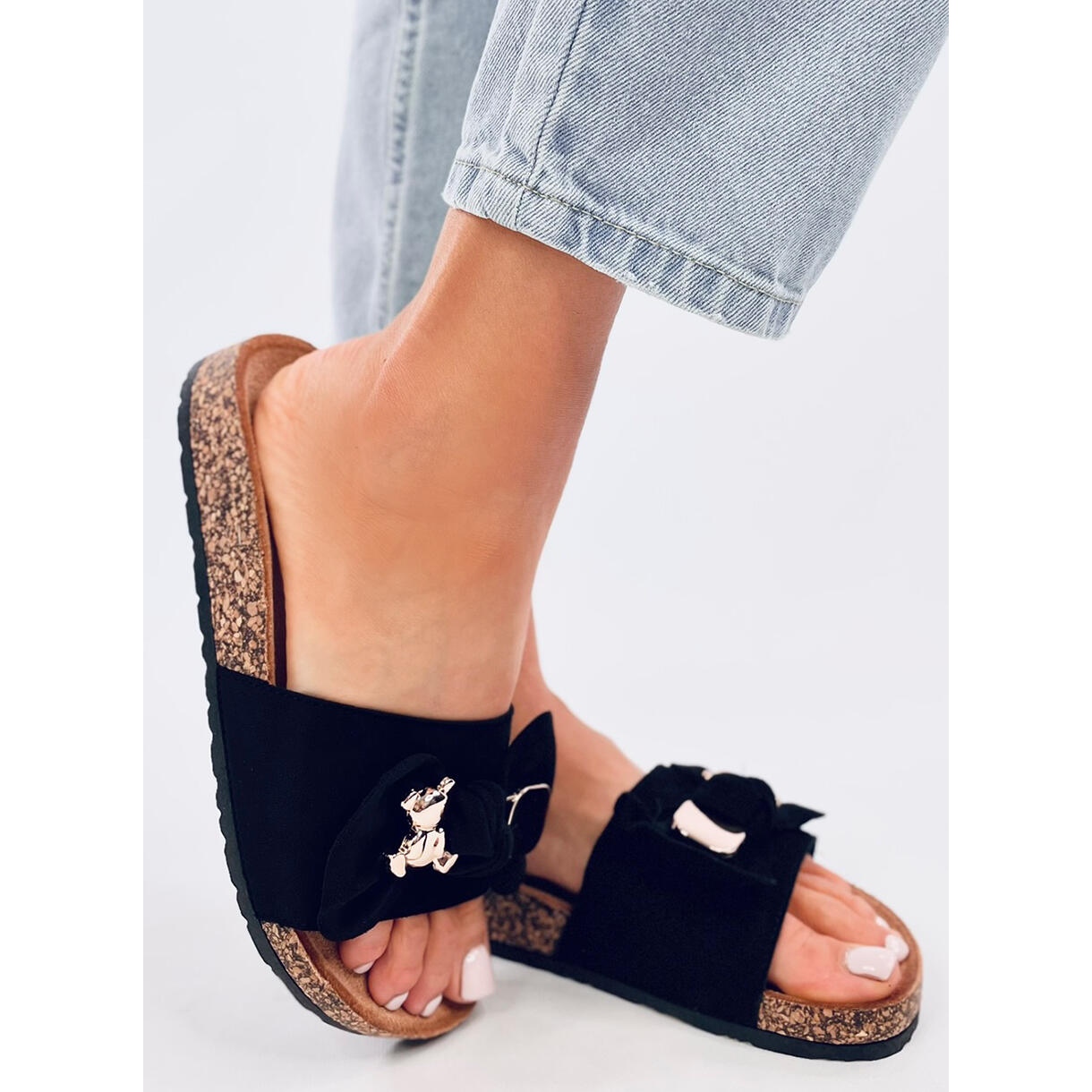 Les tongs en liège avec un ours en peluche sont l'essence même du style allié au confort, une proposition parfaite pour toute femme qui valorise les accessoires uniques dans sa garde-robe. La finition en daim noir leur confère un caractère classique mais en même temps très élégant. Si vous recherchez quelque chose de plus que des tongs ordinaires, vous apprécierez certainement l'ajout d'un magnifique nœud et d'une charmante application en forme d'ours en peluche, qui ajoute un joli charme à ce modèle.
