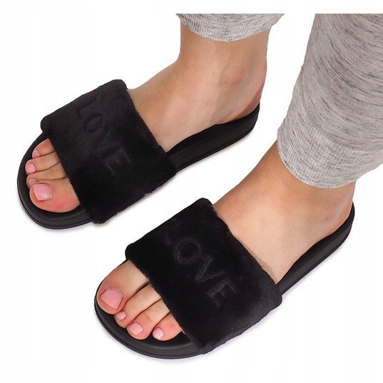 Inna marka Love HN02-4 Chaussons en Fourrure Noire le noir