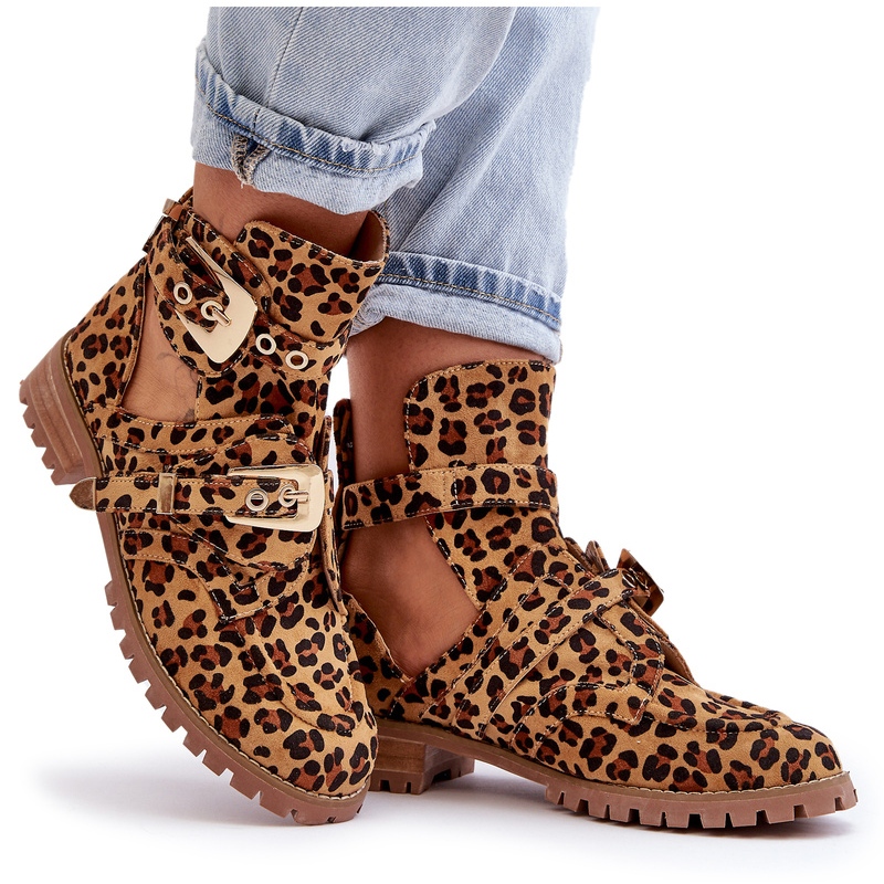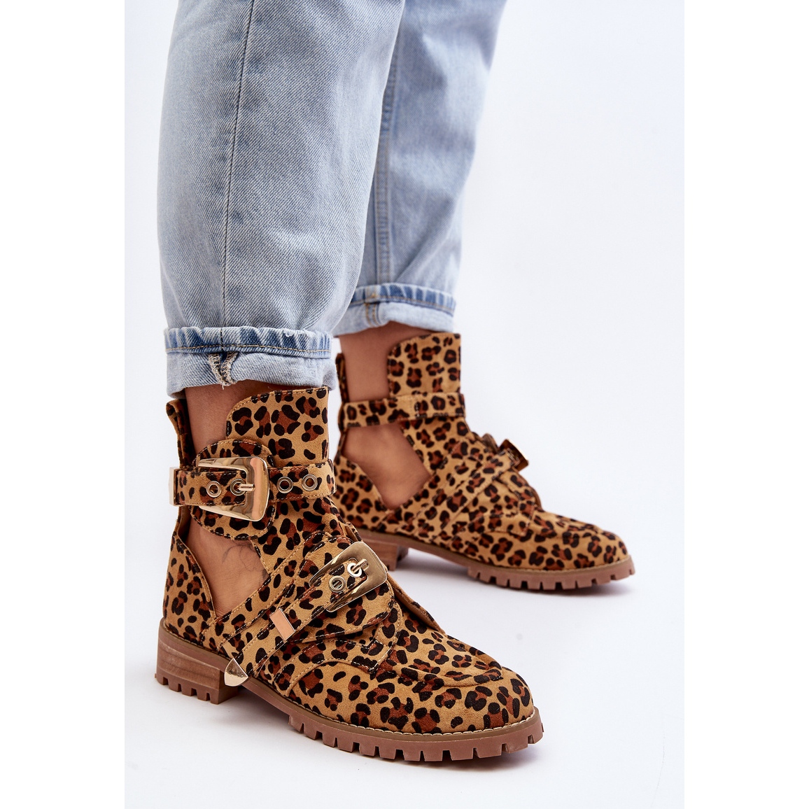 Prenez soin d'un accent de mode fort dans votre garde-robe - ces bottes Lu Boo combinent un modèle prédateur d'imprimé léopard avec un personnage rock grâce aux pinces dorées et à une semelle de tracteur. Fabriqué en daim écologique, avec des découpes décoratives qui améliorent la ventilation des pieds. Parfait pour la saison de transition - efficace, confortable et report des yeux.