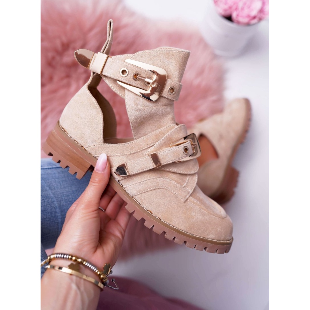 Les bottines Lu Boo en daim beige avec découpes Rock Girl sont des chaussures pour femmes dédiées aux femmes qui veulent avoir un look à la mode et élégant. Les chaussures sont confectionnées en cuir suédé écologique beige, ce qui leur confère un look esthétique et unique. Les bottes se caractérisent par un design original avec des découpes qui assurent une ventilation adéquate du pied. Les boucles dorées leur confèrent un caractère rock et affirmé.