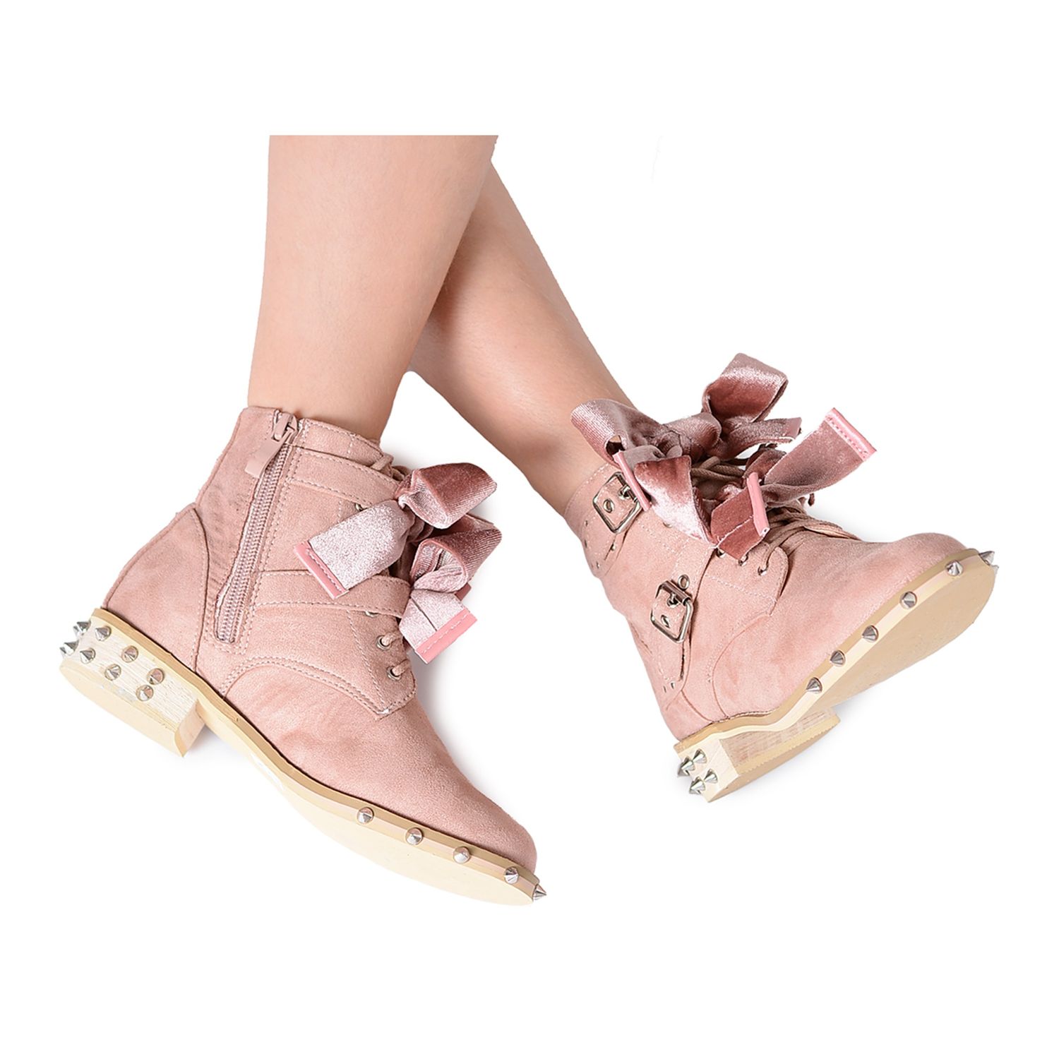LU BOO Lu Boo | Bottines Enfant à clous nœuds LittleCamila Rose Poudré