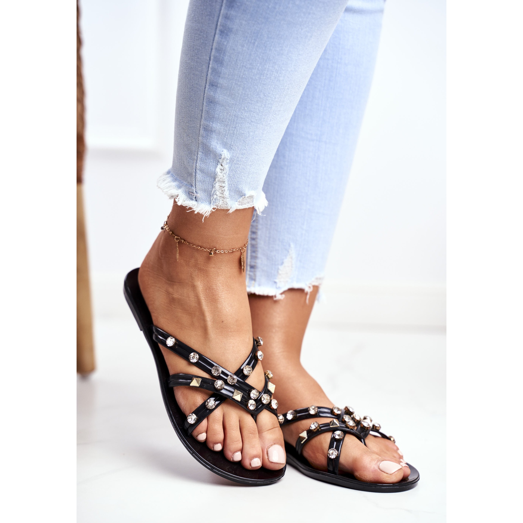 Les tongs en caoutchouc Lu Boo avec clous et strass Havana Black sont des chaussures esthétiques à enfiler pour femmes, parfaites pour les journées d'été. Ils sont fabriqués dans un matériau en caoutchouc délicat, ce qui garantit un confort de port extraordinaire. Le créateur s'est concentré non seulement sur le confort, mais également sur un style attrayant, en ajoutant des strass étincelants et des strass à la surface des chaussures.