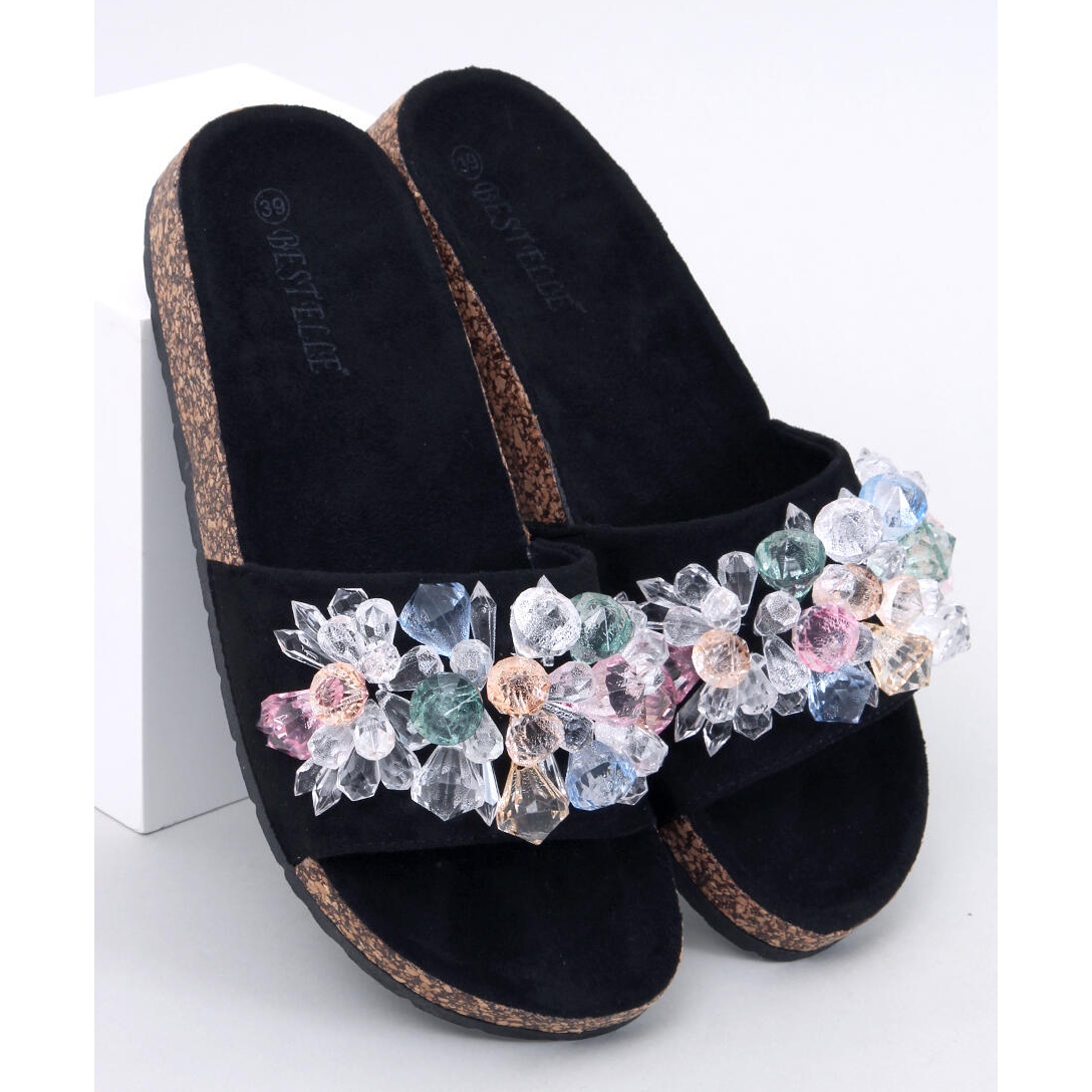 Détails: Maliv Chaussons en liège noir avec pierres le noir