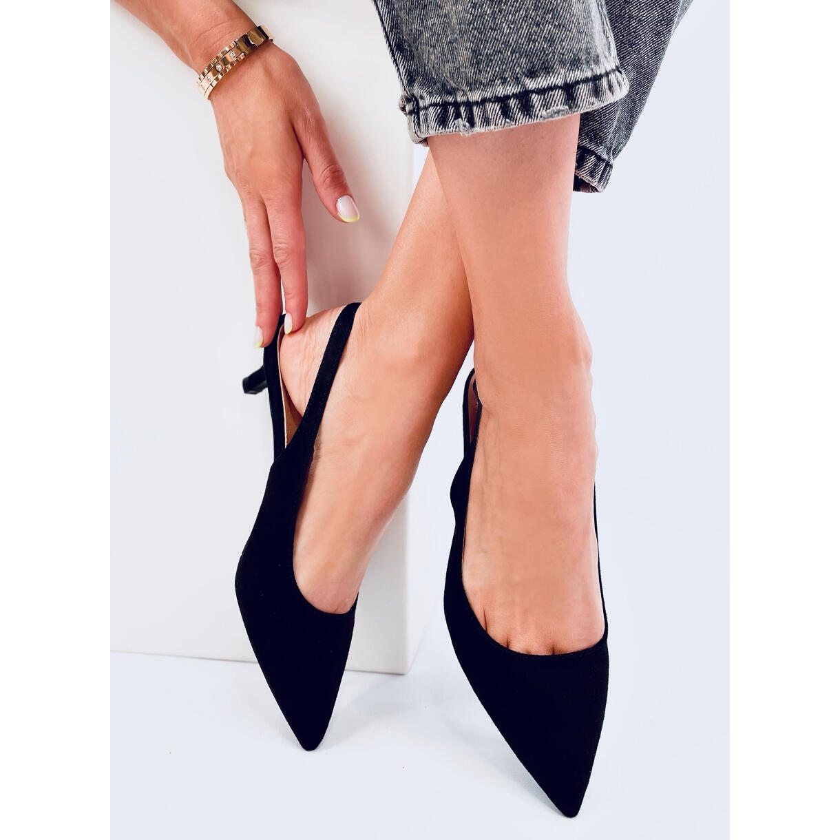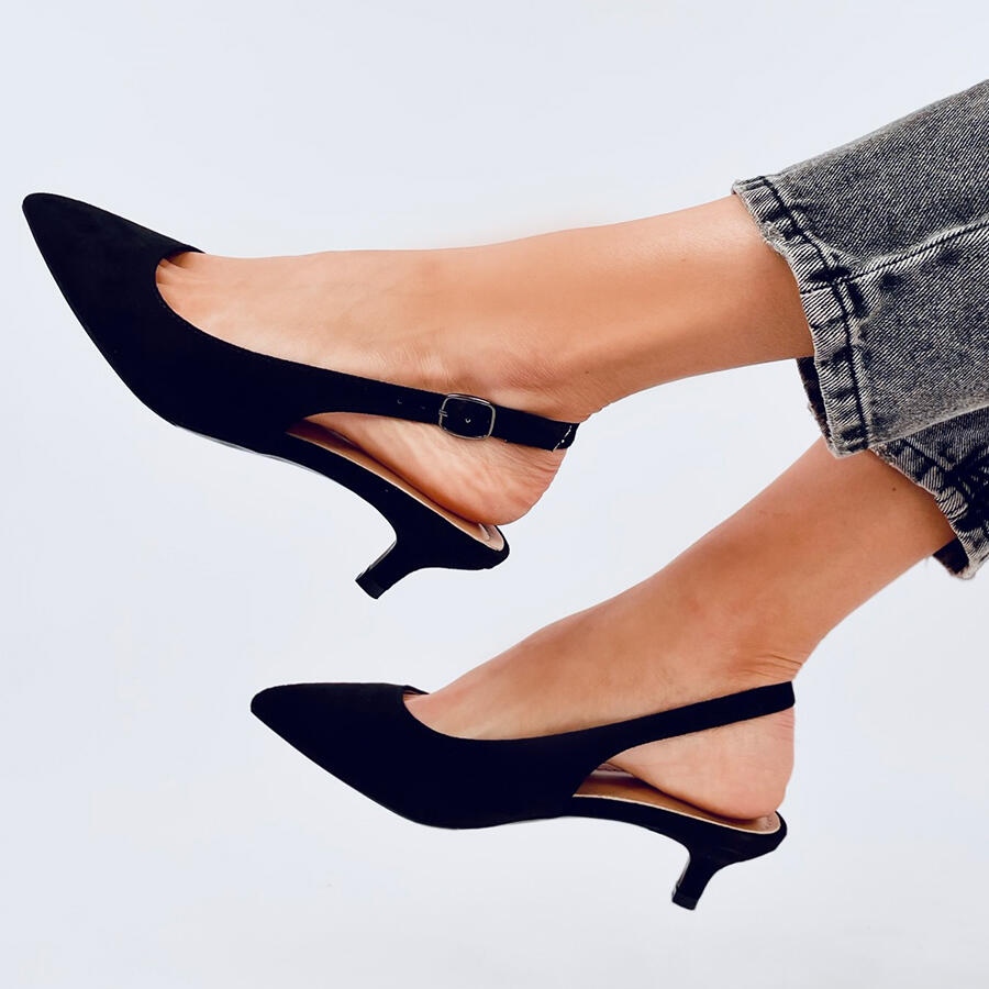 Les talons bas Malloi Black avec un talon ouvert sont un choix élégant pour toute femme qui valorise le style et le confort. Fabriqués en daim écologique, ces talons aiguilles noirs avec un talon de 5 cm sont parfaits aussi bien pour un usage quotidien que pour les occasions spéciales. Le motif lisse et la coupe classique mettent parfaitement en valeur la silhouette féminine, et le bout pointu ajoute du chic.