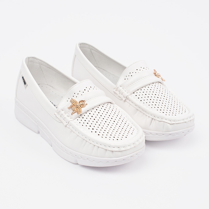 La couleur blanche des mocassins de Goodin les rend parfaitement se mélangent avec diverses stylisations - des robes d'été aux pantalons légers. De plus, la hauteur de la plate-forme de 3 cm offre une augmentation subtile, sans abandonner la commodité.