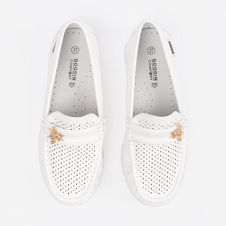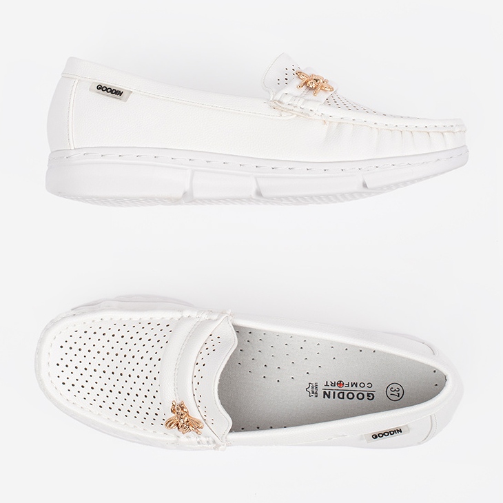 Nous présentons des mocassins blancs de Goodin Women, qui combinent harmonieusement l'élégance avec un confort exceptionnel. Ces chaussures glissantes se réjouissent d'un design simple et élégant, correspondant parfaitement aux stylisations tous les jours et plus formelles.