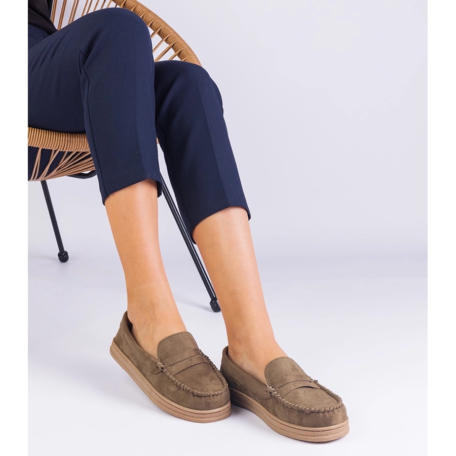 Les mocassins sont caractérisés par une hauteur basse et un nez rond, qui offre non seulement un look à la mode, mais aussi un confort de port maximal. L'insert doux de cuir écologique et une semelle en caoutchouc solide les font y marcher pendant de longues heures, sans se soucier de la fatigue. Grâce à la structure insérée, les porter devient encore plus facile.
