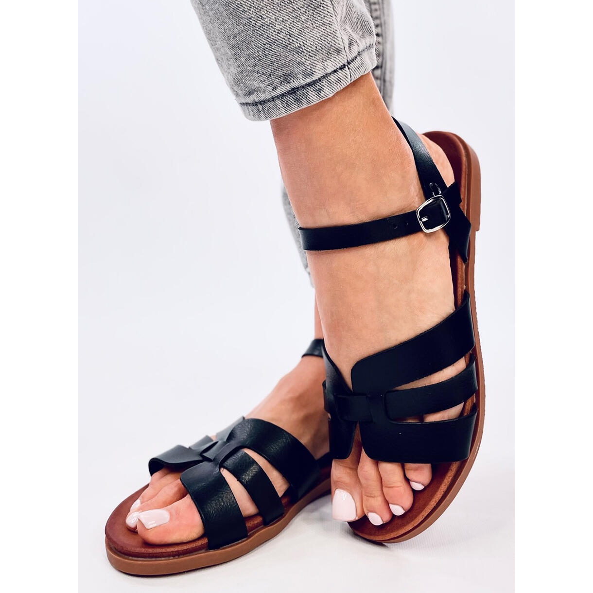 Les sandales ont été conçues avec la commodité de l'utilisation - grâce à la fixation réglable autour de la cheville, vous pouvez parfaitement les faire correspondre à votre pied. Une semelle plate d'une hauteur de 2 cm assure le confort toute la journée, ce qui en fait un excellent choix chaque jour.