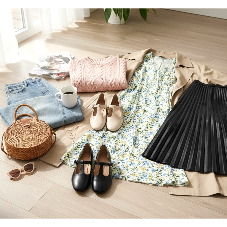 Les styles romantiques avec des robes midi ou longues à motif floral et des paires Mary Jane en beige ou blanc sont l'un des looks les plus attendus du printemps 2026. Ajoutez un sac en osier et soyez prêt pour une promenade, un café ou un week-end en ville.