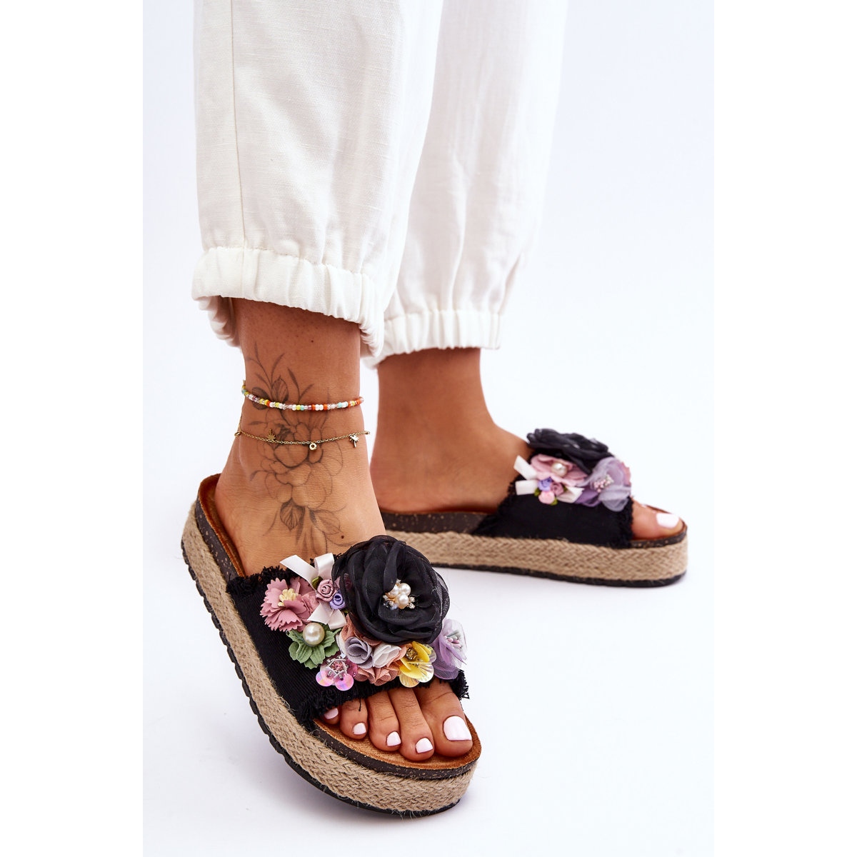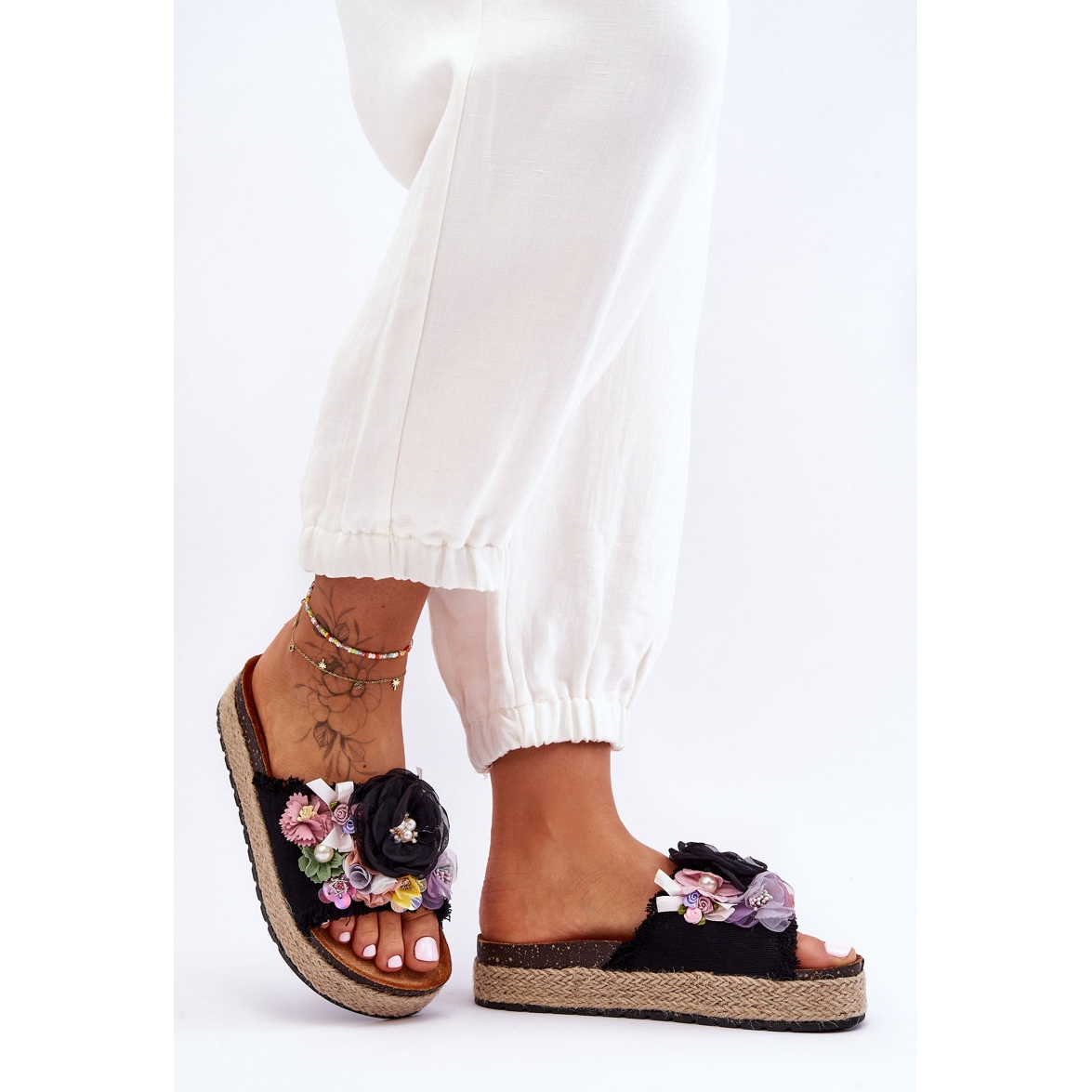Inna marka Matière Chaussons Avec Fleurs Noir Nessa le noir