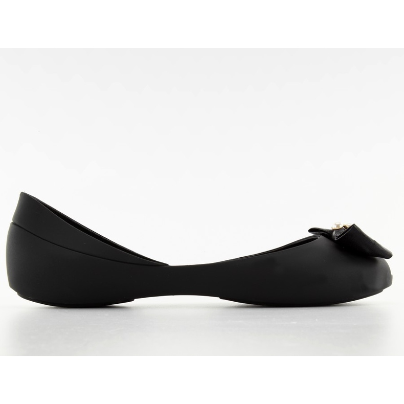 Charmantes ballerines à enfiler entièrement en caoutchouc de silicone souple. Un modèle parfait pour les amateurs de confort et d'un look minimaliste et élégant - un noir classique avec un nœud subtil en éco-cuir pleine fleur.
