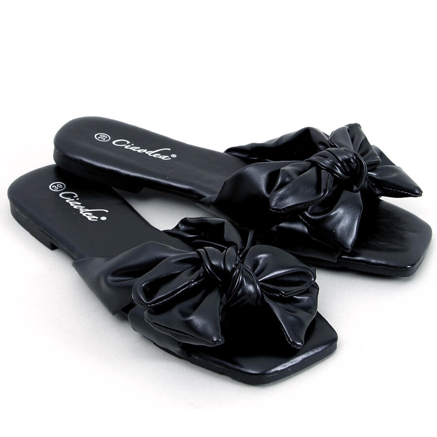 Des tongs élégantes avec un joli nœud attireront certainement beaucoup d'attention, et leur surface lisse et leur noir classique les rendront assorties à de nombreuses tenues. Grâce à la semelle synthétique et à la semelle intérieure en cuir écologique, vous avez la garantie d'un confort à chaque pas.