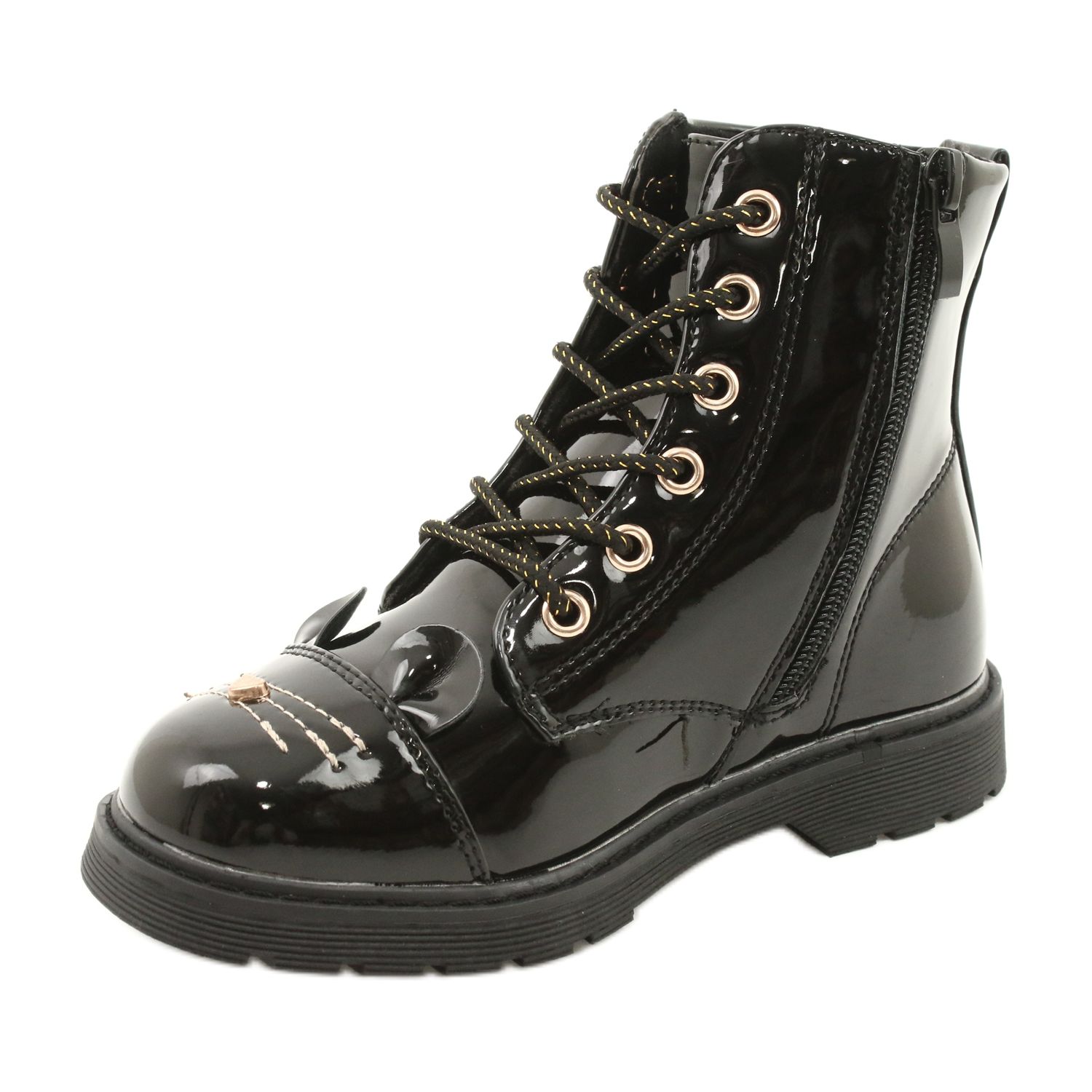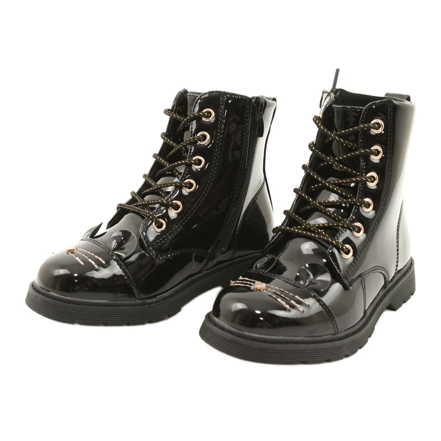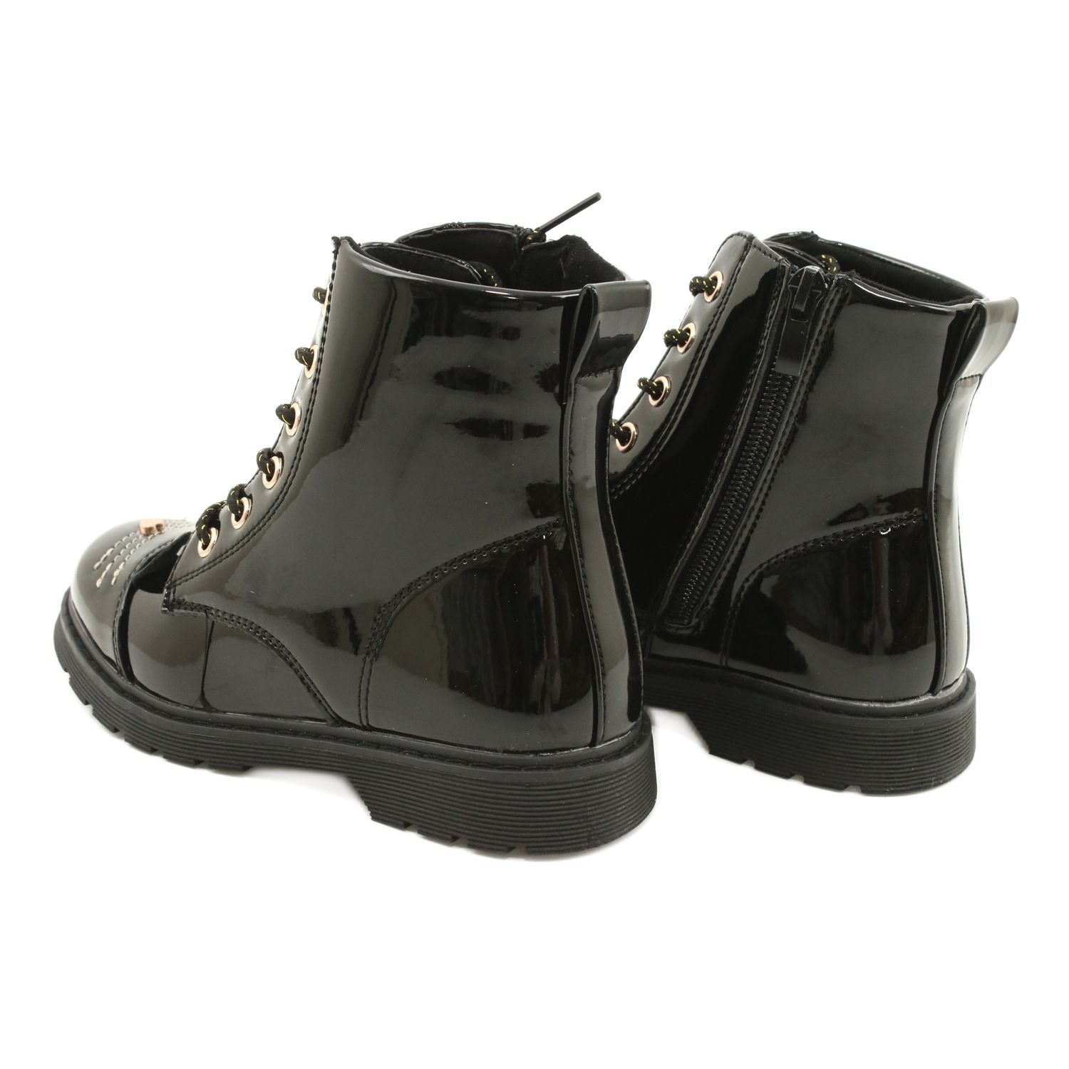 Ces bottes combinent une apparence à la mode et verni avec des fonctionnalités - le curseur facilite la mise en place rapidement, et les lacets vous permettent de faire correspondre précisément la chaussure au pied. Le réchauffement offre un confort les jours plus frais, et les détails dorés décoratifs ajoutent de l'élégance et font ressortir les chaussures d'autres modèles.