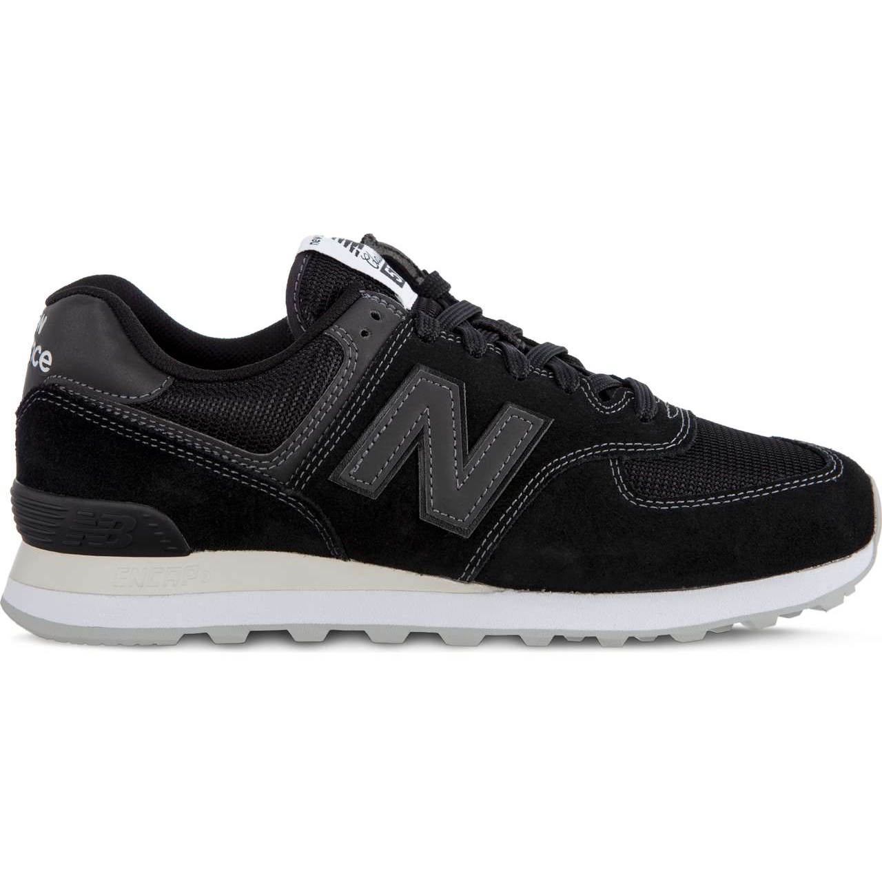 New Balance ML574ETA Black - baskets classiques pour hommes alliant design intemporel et confort au quotidien. Des chaussures basses noires avec une tige en daim et des empiècements en mesh aéré pour un look à la fois élégant et sportif qui s'adaptera aussi bien aux styles urbains qu'aux occasions décontractées.