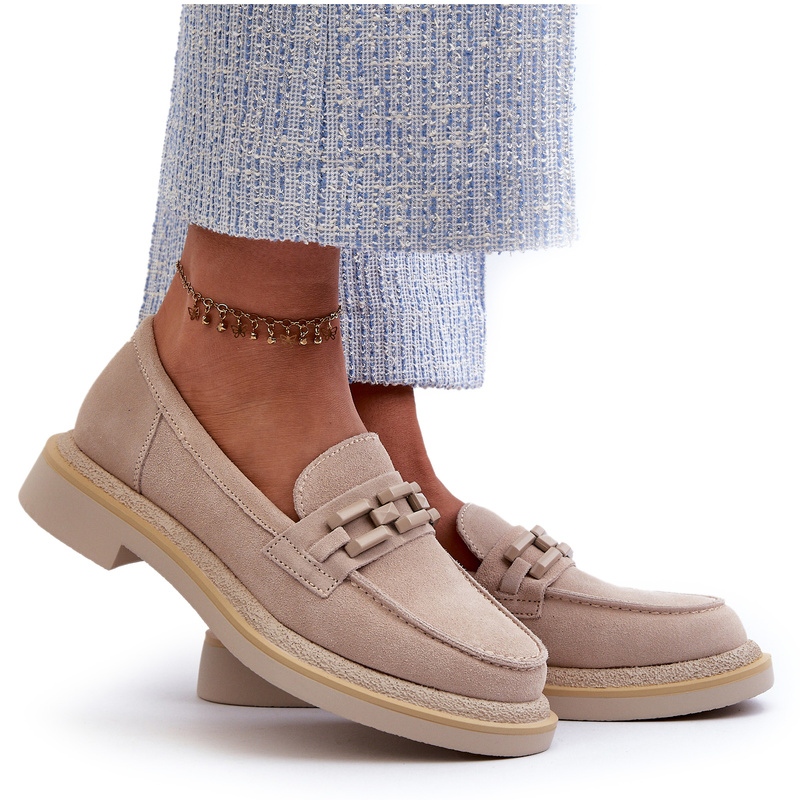 S.Barski S.Barski Mocasins en daim à thèmes plates avec décoration D&A TW101 J.Beżowe beige