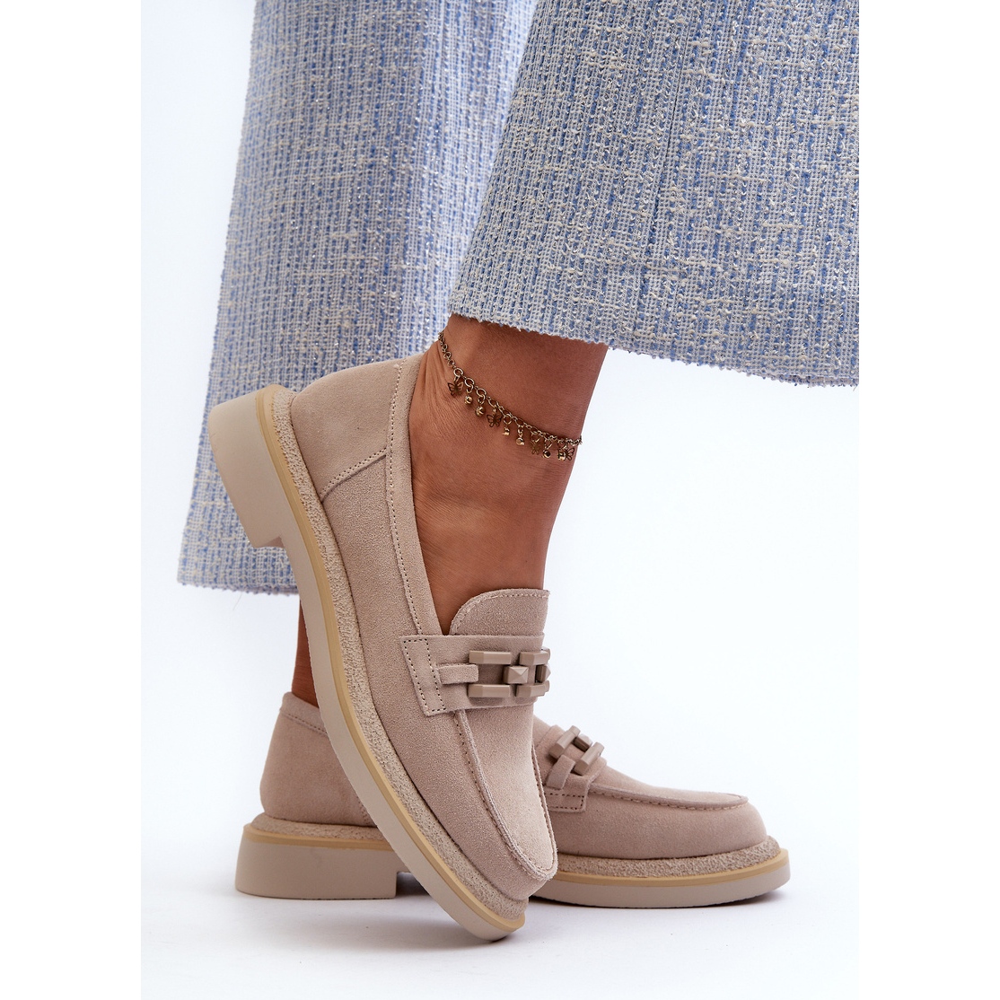 L'élément unique qui distingue ces mocassins des autres est la chaîne décorative placée sur le devant de la chaussure. Cette décoration subtile mais en même temps originale leur confère un caractère unique, ce qui en fait un excellent choix pour les femmes qui apprécient à la fois le confort et le design tendance.