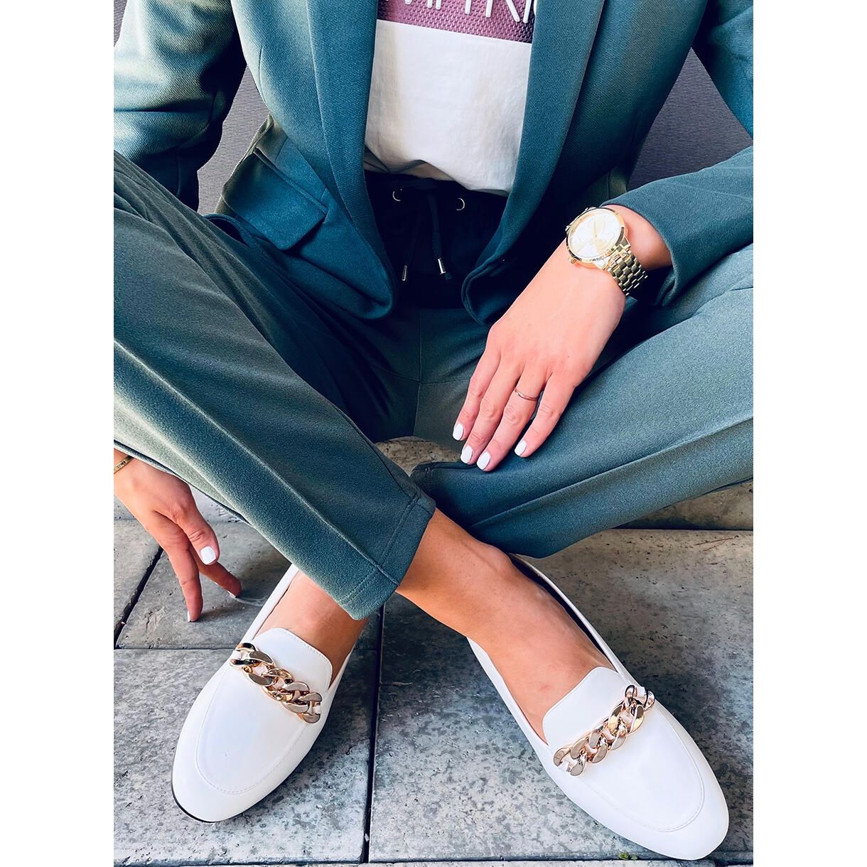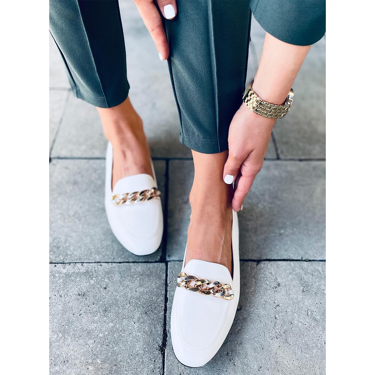 Les mocassins à chaîne Addison White sont le choix parfait pour les femmes qui souhaitent allier élégance et confort au quotidien. Ces chaussures en cuir écologique de haute qualité se distinguent par leur design intemporel, enrichi d'un accent tendance sous la forme d'une chaîne élégante.