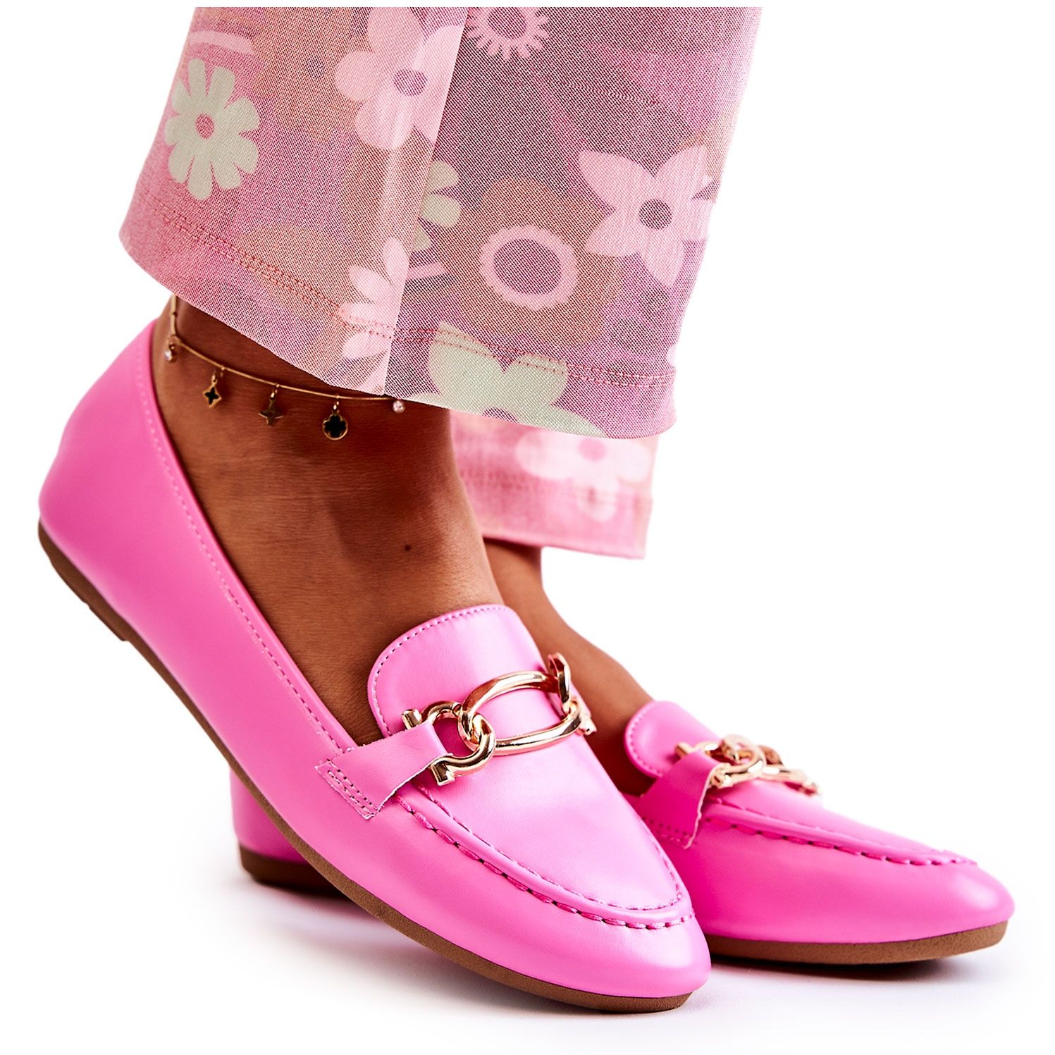 Les mocassins se caractérisent par un bout arrondi et un talon plat, ce qui en fait un choix idéal aussi bien pour un usage quotidien que pour des occasions spéciales. L'élément décoratif en plastique sur le devant des chaussures leur confère un charme unique et les distingue des autres modèles.