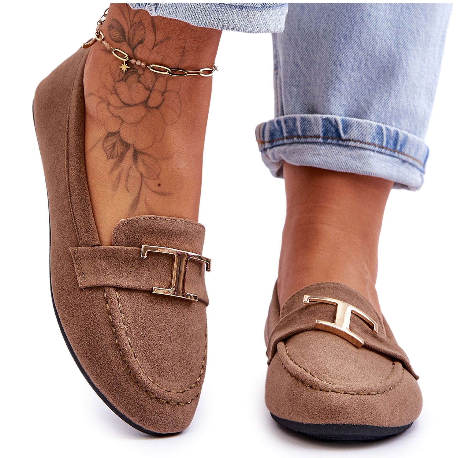 Les mocassins de carly élégants et intemporels sont un incontournable dans la garde-robe de chaque femme. Fabriqué en cuir écologique en daim dans une teinte beige neutre, avec une subtile décoration dorée et des strass, ils combinent le confort d'une chaussure quotidienne avec une finition élégante idéale pour de nombreux styles.