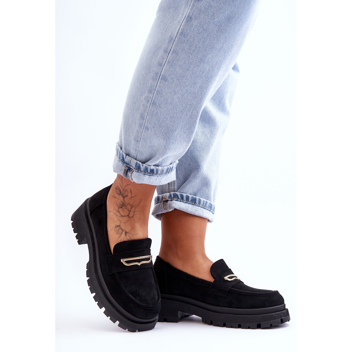 Fabriqués en daim écologique de la plus haute qualité, ils sont impeccables et respectueux de l'environnement. Leur plateforme massive de 3 cm de haut et leur talon plat de 5,5 cm de haut leur confèrent non seulement un look original, mais garantissent également stabilité et confort à chaque pas.