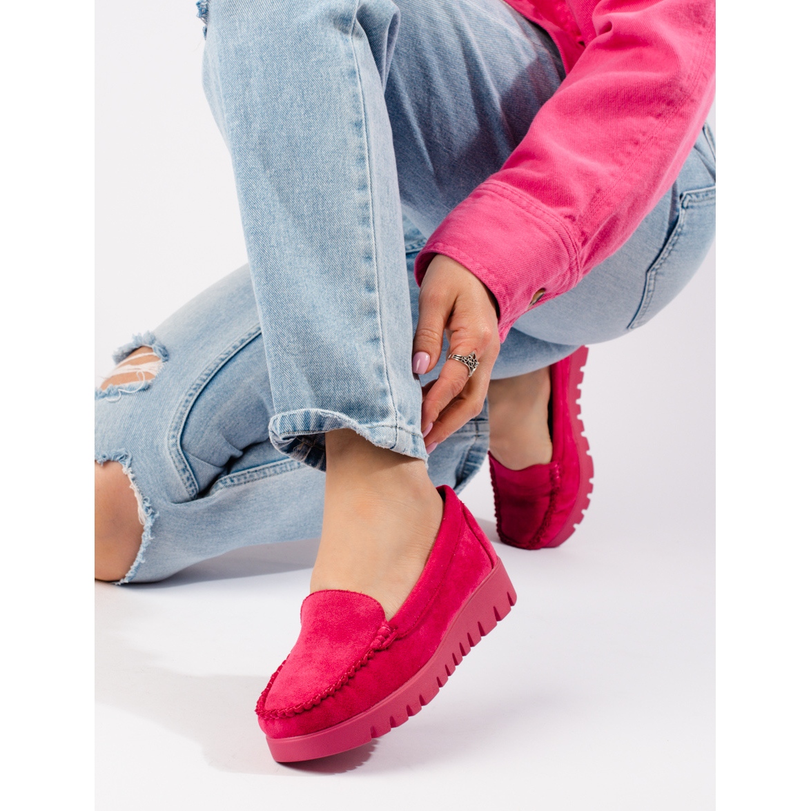 Les mocassins ont une plateforme de 3 cm de hauteur, ce qui en fait une solution idéale pour les femmes qui apprécient à la fois le confort et l'élégance. La couleur rose les rend frais et légers, et leur design minimaliste les rend faciles à assortir avec différents styles.