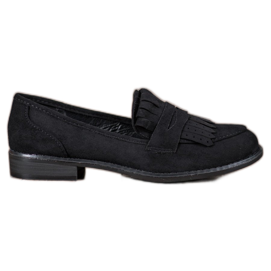 Découvrez un style et un confort uniques dans les mocassins SHELOVET à franges d'un noir profond. Ces chaussures classiques pour femmes en cuir suédé écologique allient élégance et touche moderne, grâce à des franges décoratives de style bohème. Parfaits pour un usage quotidien, ils s'accordent parfaitement avec une variété de styles, du plus décontracté au plus élégant.