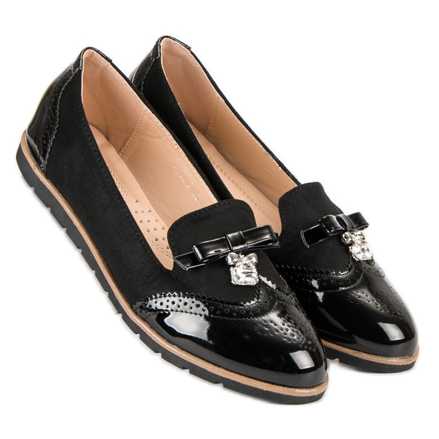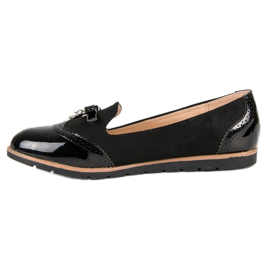 Découvrez l'élégance et le confort qu'offrent les mocassins noirs tendance du fabricant SDS. Ces chaussures pour femmes ont été soigneusement confectionnées à partir de daim écologique de haute qualité, ce qui les rend non seulement élégantes, mais également respectueuses de l'environnement. Un bout rond et un talon élégant fini en similicuir verni d'une couleur noire classique ajoutent du chic à l'ensemble.