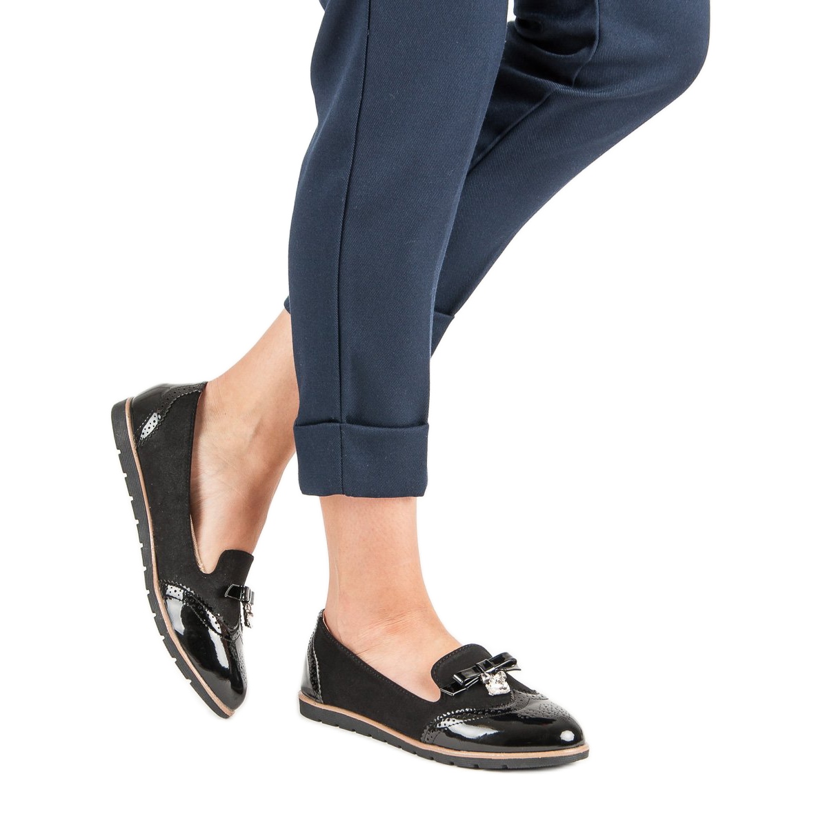 Les mocassins se distinguent par des détails décoratifs : un nœud brillant et un pendentif avec un cristal carré attirent l'attention et rendent chaque pas plus élégant. Grâce à leur aspect intemporel, ces chaussures sont parfaites pour les styles élégants et quotidiens, ajoutant du caractère à n'importe quelle tenue.