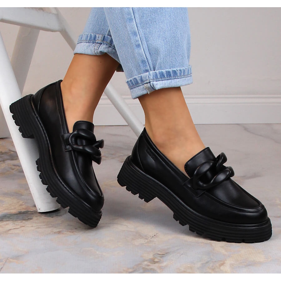 Les mocassins noirs à talons hauts et plateforme Big Star LL274580 avec chaîne sont un choix parfait pour les femmes modernes qui apprécient le style combiné au confort. Fabriquées en cuir écologique de haute qualité, ces chaussures élégantes sont non seulement attrayantes en apparence, mais aussi fonctionnelles.