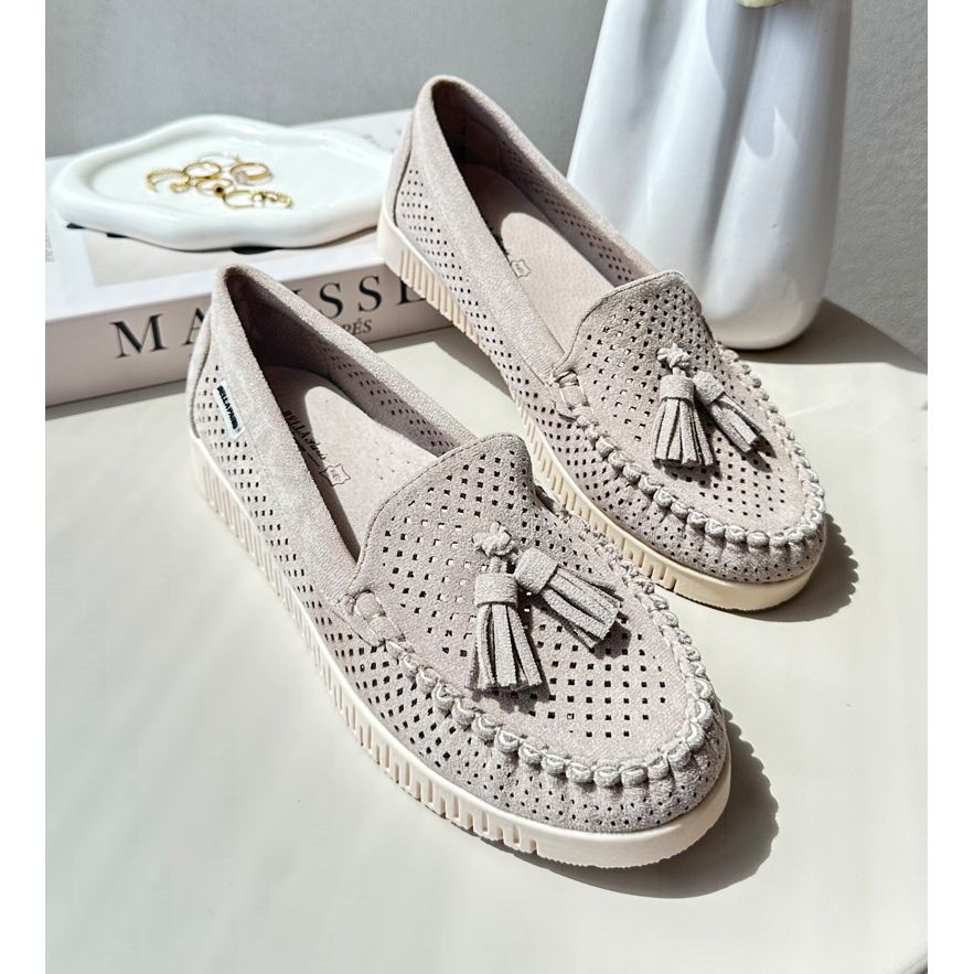 Les mocassins sont faits de cuir en daim écologique de haute qualité, ce qui les rend respectueux de l'environnement, et en même temps superbes. À l'intérieur, il y a un insert doux de cuir naturel, qui garantit le confort de porter toute la journée. Un avantage supplémentaire est le manque de réchauffement, ce qui les rend parfaits au printemps et en été.